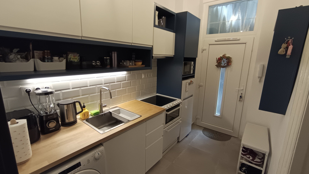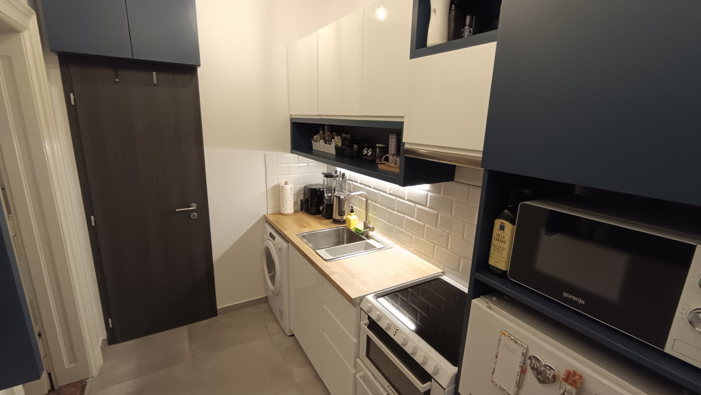 Az ingatlan igényes, egyedi kialakítású konyhával, jó minőségű beépített bútorokkal és gépekkel rendelkezik. A felújítás során a teljes víz- és villamoshálózat megújult, a nyílászárók (ablakok, bejárati ajtó) cseréje megtörtént. A lakás külön villanyórával rendelkezik, a korlátlan vízhasználatot tartalmazó közös költség 13 000 Ft.