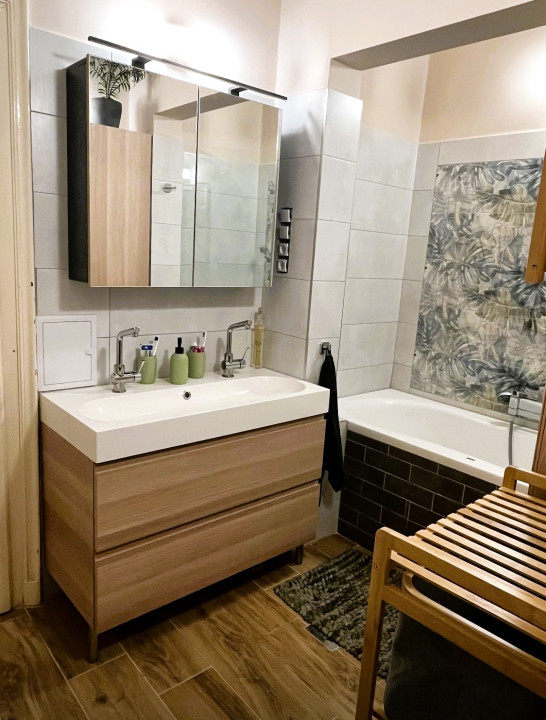 Felújított, benne kád, csempe - burkolat - szaniterek kitűnő állapotban.