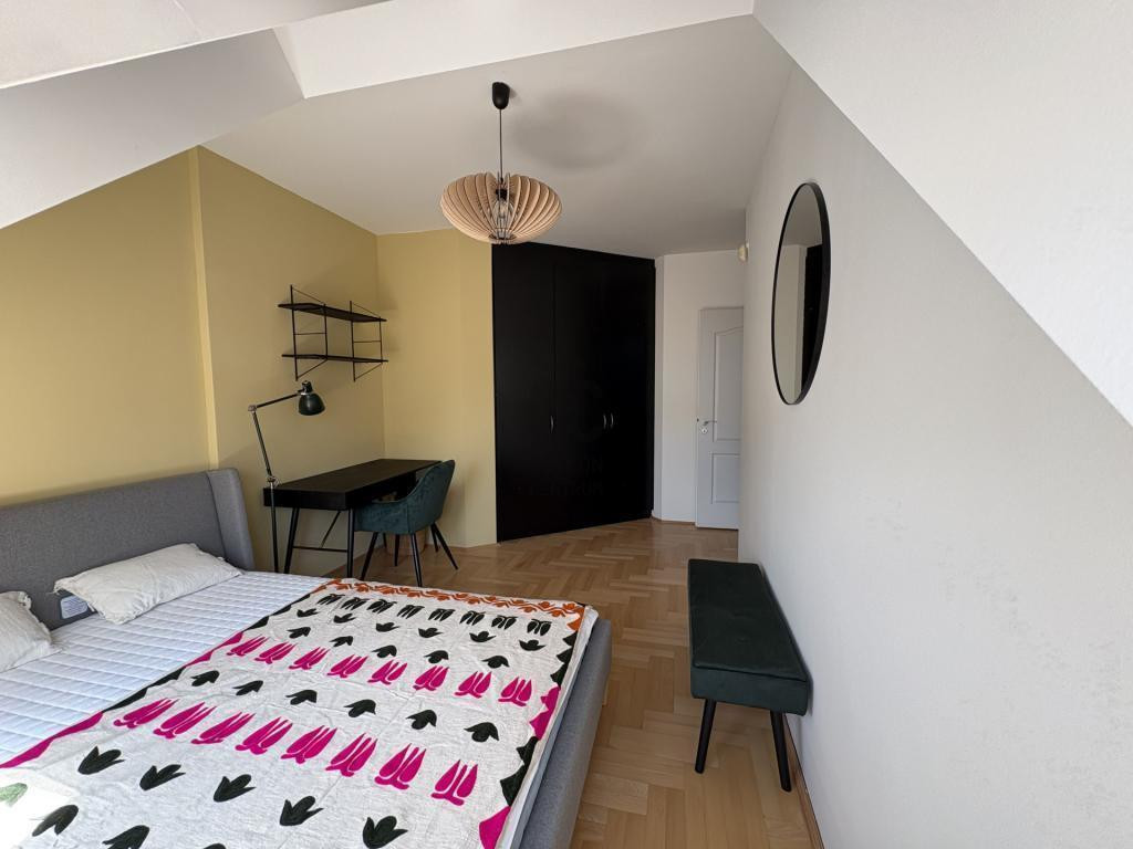 A felújítás során kizárólag új, még nem használt bútorok és gépek kerültek beépítésre. A modern konyha teljesen felszerelt, mosogatógéppel ellátott, a szobák légkondicionáltak, így a lakás minden évszakban ideális környezetet nyújt munkához, tanuláshoz és pihenéshez.