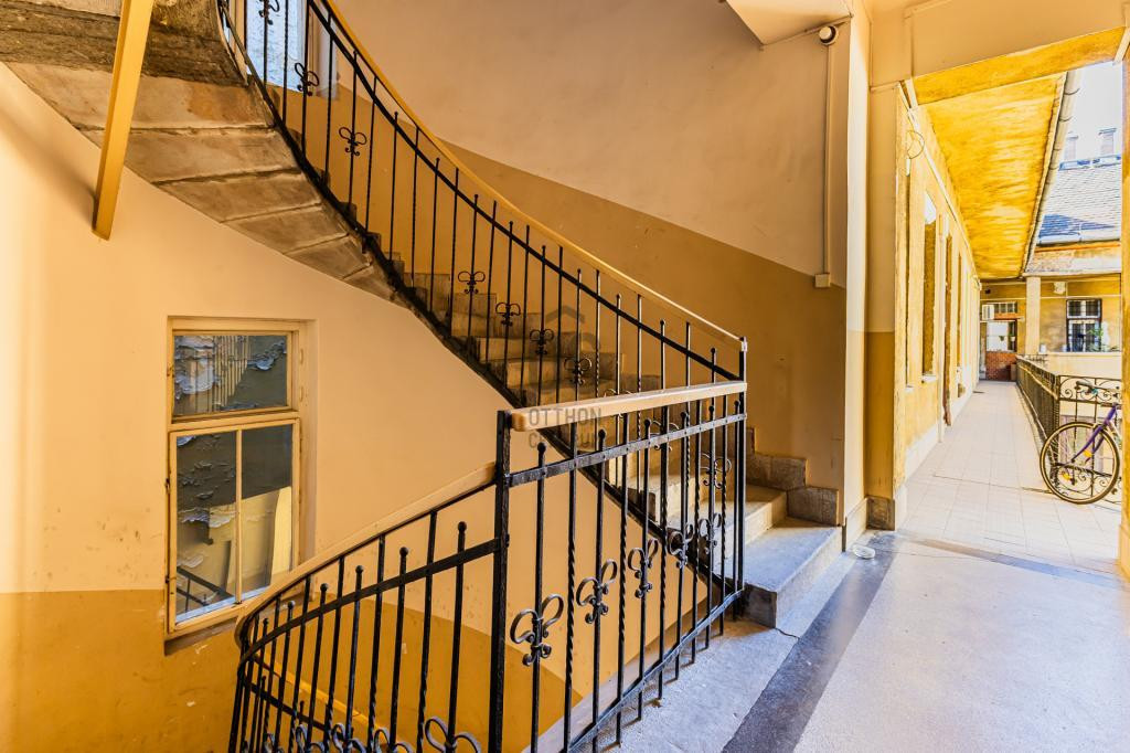 A lakás egy átlagos állapotú társasház második emeletén található.