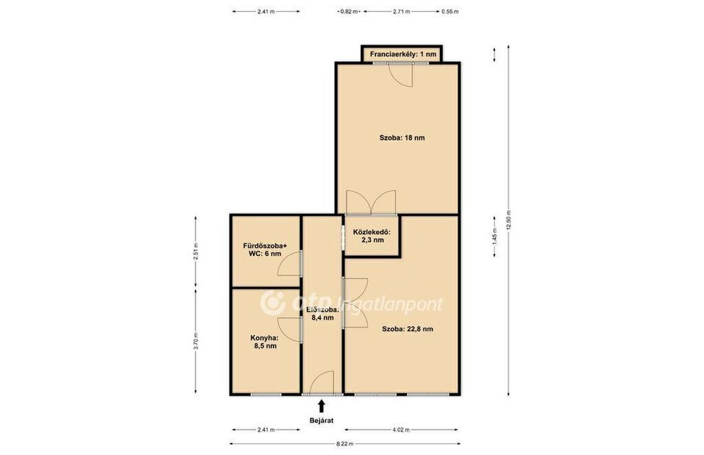 Két tágas, különnyíló szobája kényelmes életteret ad, az étkezős konyha a mindennapok természetes központja. A fürdőszoba és a WC egy helyiségben található.