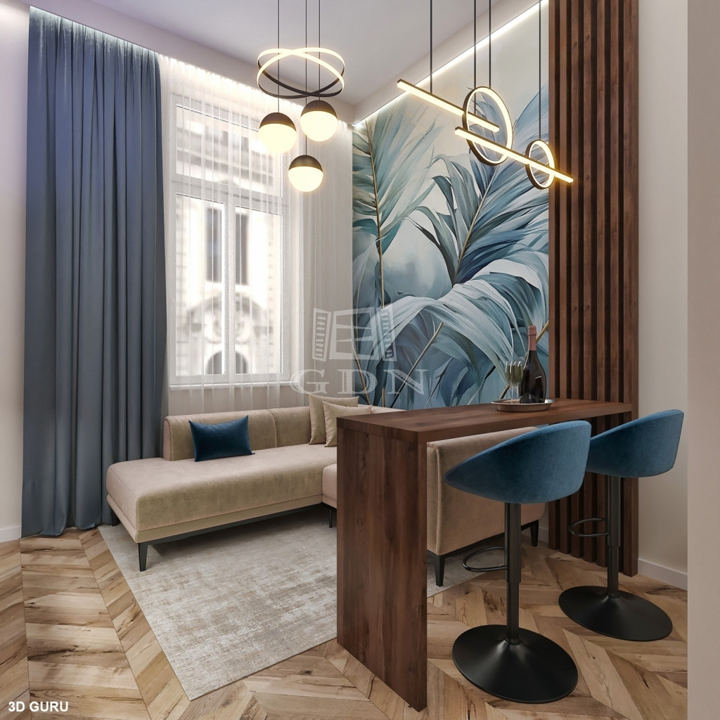 Despite its small floor space, every square metre of the apartment has been carefully thought out: in addition to the living room-kitchen area, an ingeniously designed sleeping alcove makes the space even more homely and practical. It is the perfect choice for young people, as a first home, or even as an investment, as the area is extremely sought-after.