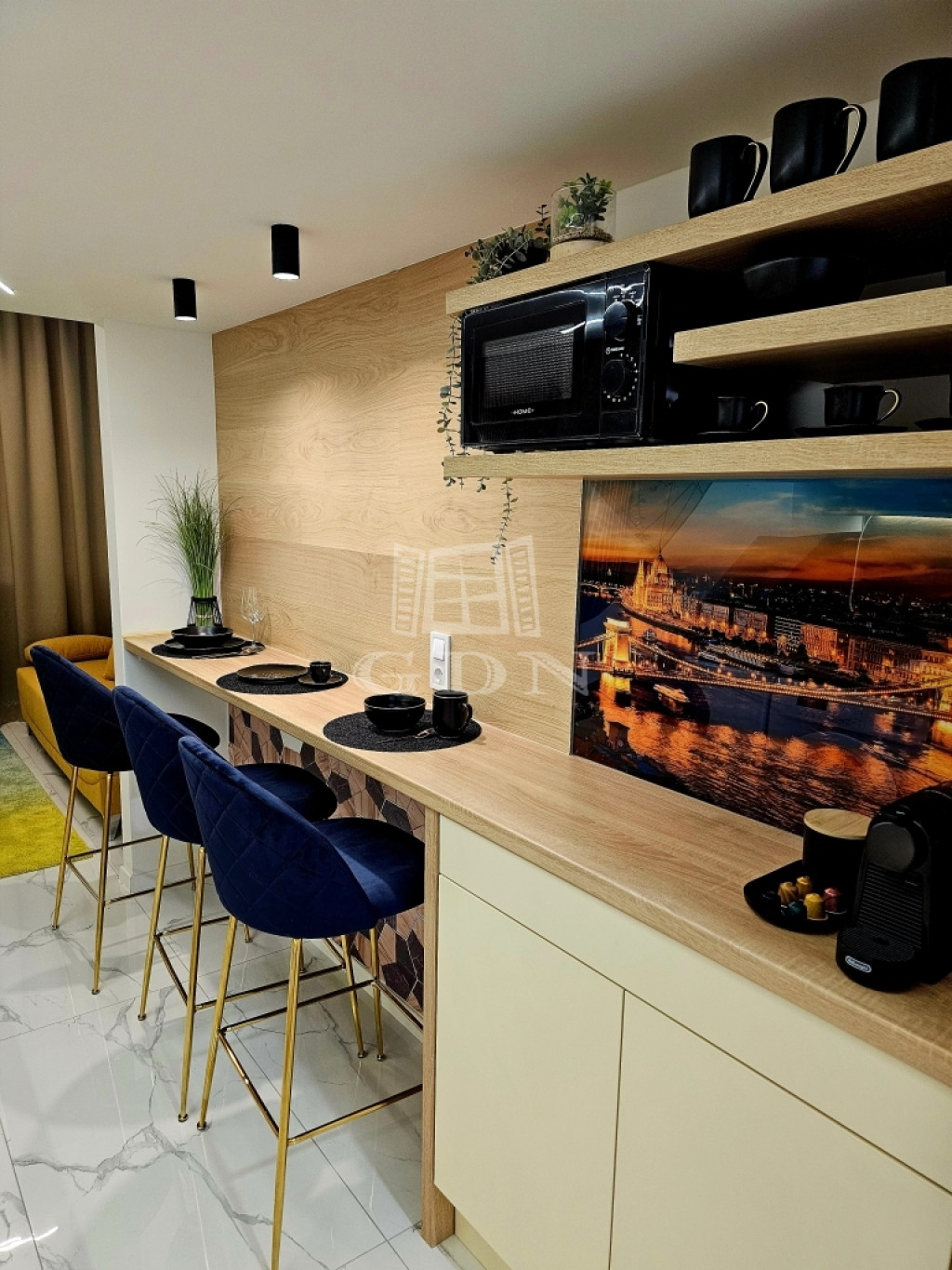 A kis alapterület ellenére a lakás minden négyzetmétere átgondolt: a nappali-konyha rész mellett egy ötletesen kialakított hálófülke teszi még otthonosabbá és praktikusabbá a teret. Tökéletes választás lehet fiataloknak, első lakásnak, de akár befektetésnek is, hiszen a környék rendkívül keresett.