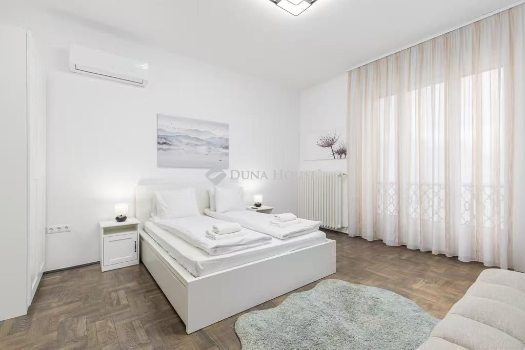 7. ker. az Astoriánál eladó, 98 m2-es, jelenleg két önálló lakássá alakított, teljes körűen felújított, klimatizált, ERKÉLYES, napfényes, AIRBNB-engedélyes lakás, liftes, jó állapotú polgári ház magas emeletén.