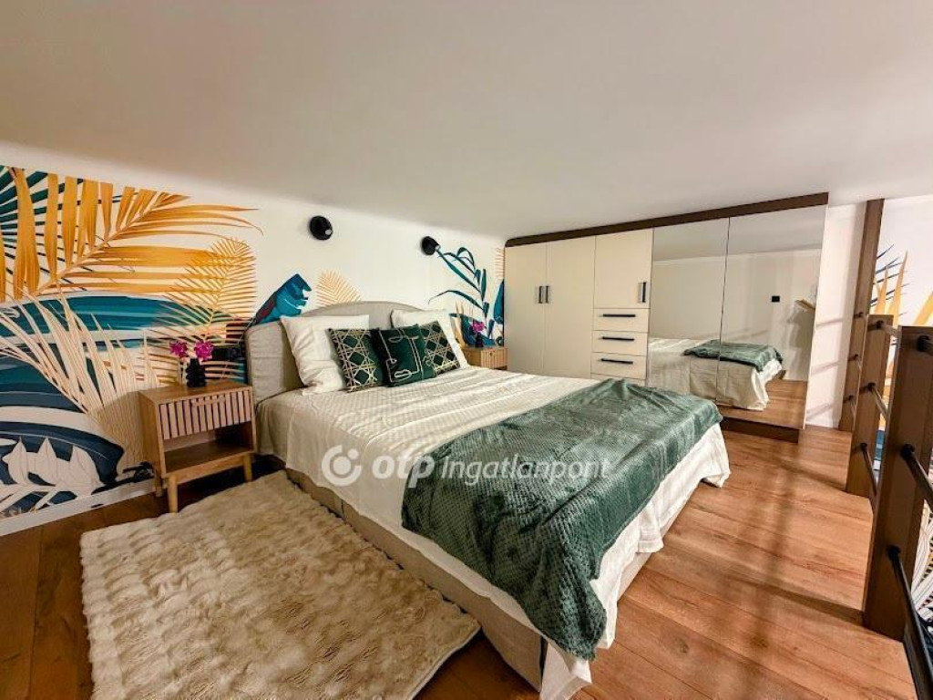 A bútorozott galéria 11,4 nm, a 160 cm magas térben nagy tárolókapacitású szekrények és egy franciaágy teszi jól kihasználhatóvá és kényelmessé a mindennapokat.