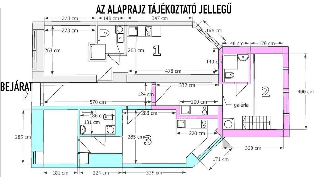 A lakás egy 71 nm-es lakásból lettek kialakítva, és egy közös folyosóról nyílnak. (3 db)