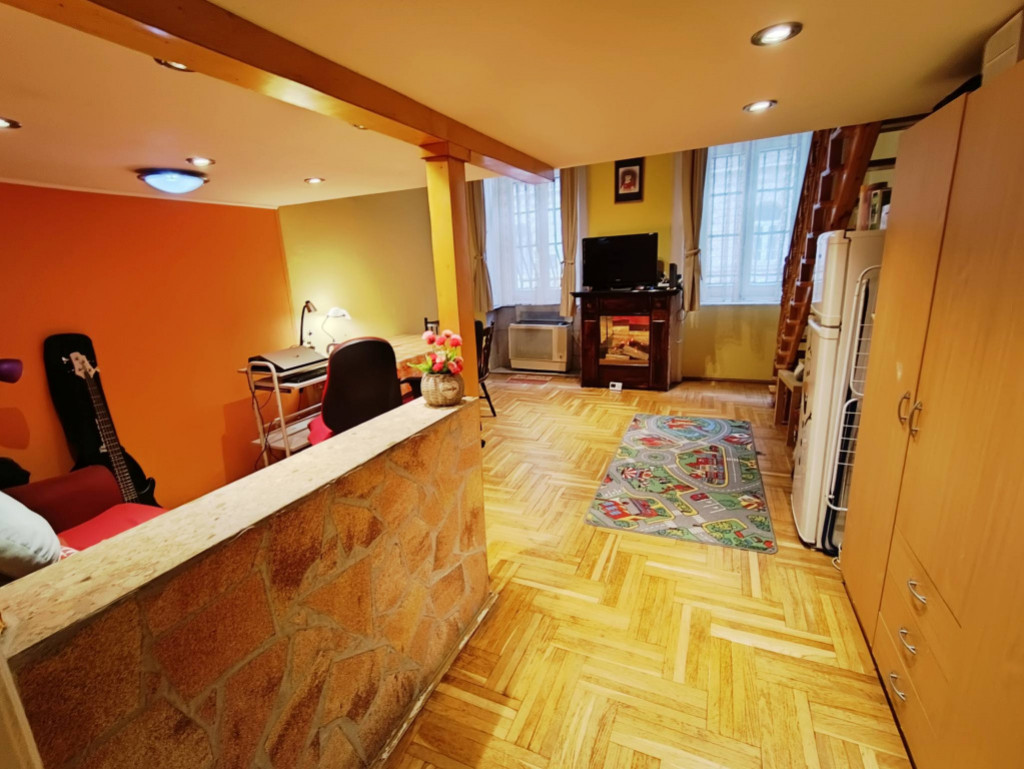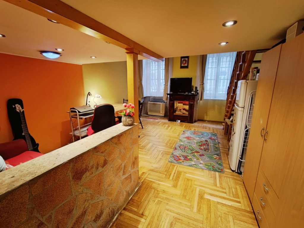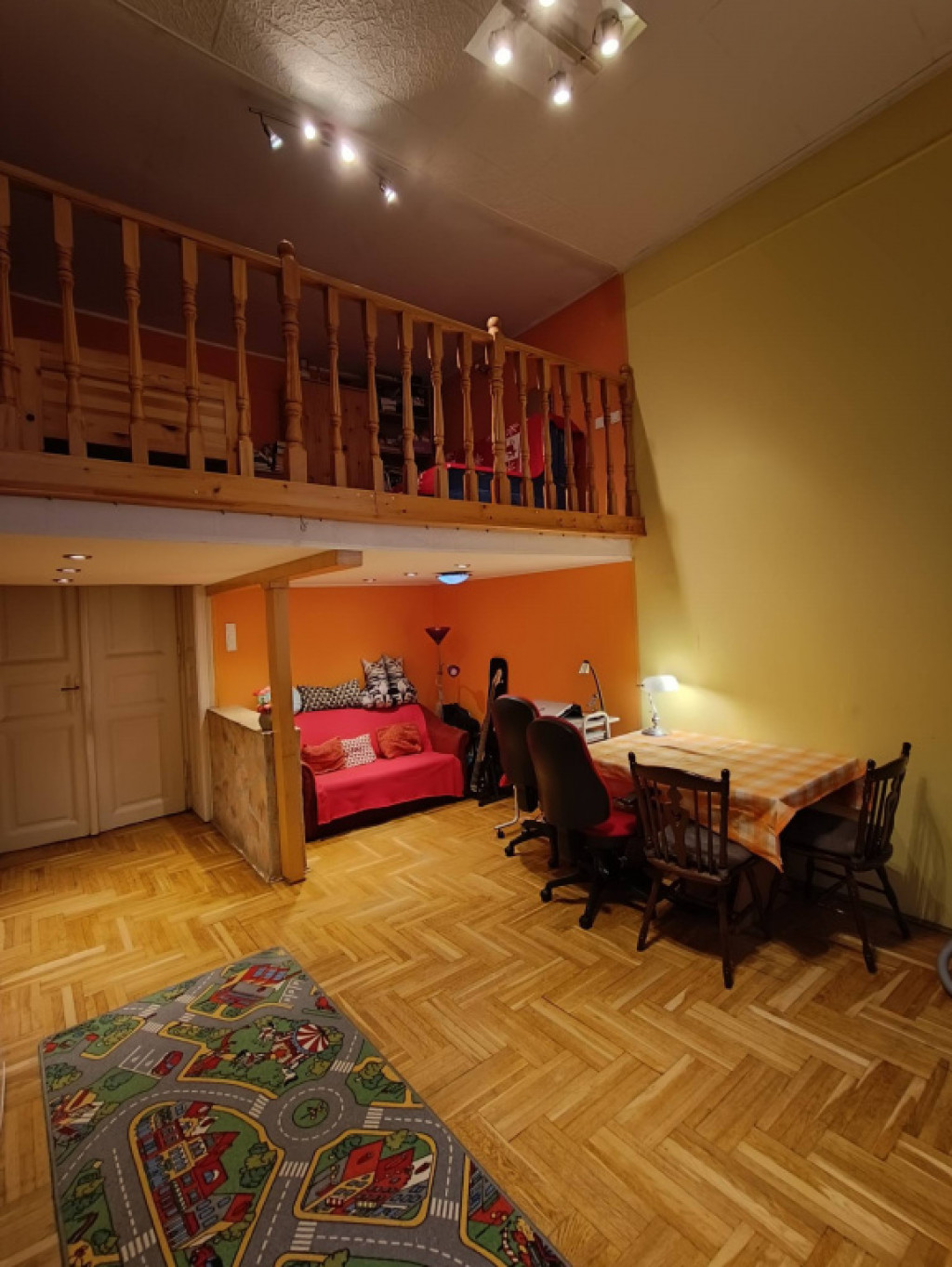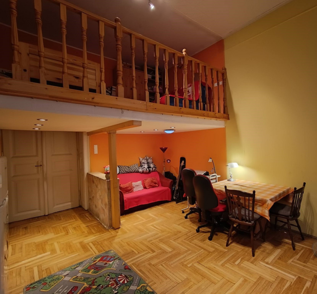 A tágas szobában található egy 10 m²-es állógaléria, amellyel a lakótér tökéletesen kihasználható — hálónak, dolgozó saroknak vagy tárolónak is remek.