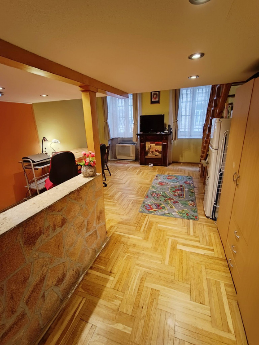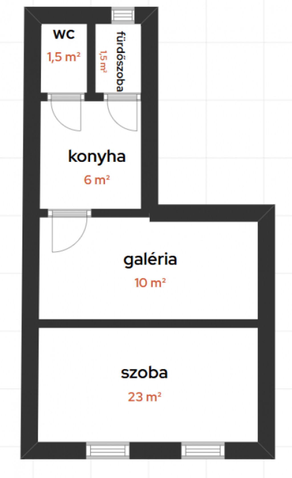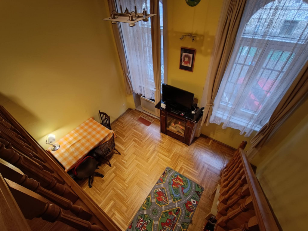 A tágas szobában található egy 10 m²-es állógaléria, amellyel a lakótér tökéletesen kihasználható — hálónak, dolgozó saroknak vagy tárolónak is remek.