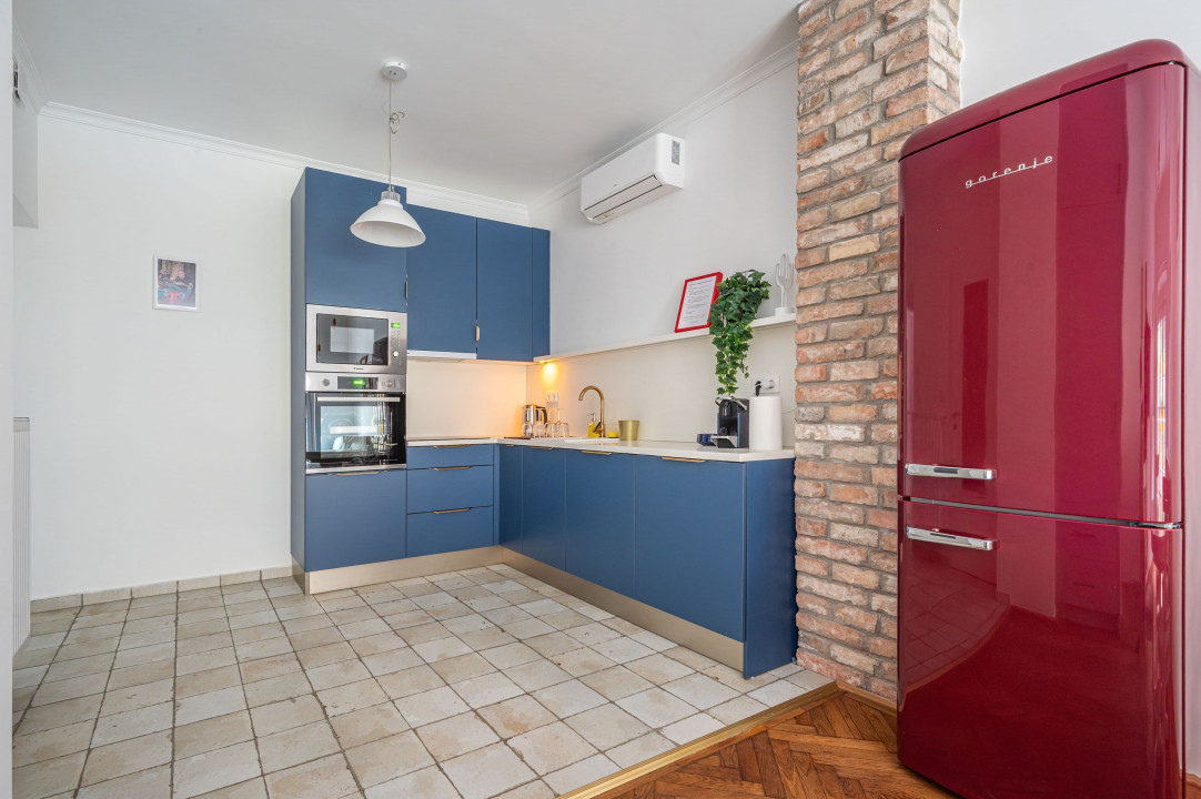 - Korszerű, jól felszerelt konyha – beépített gépekkel