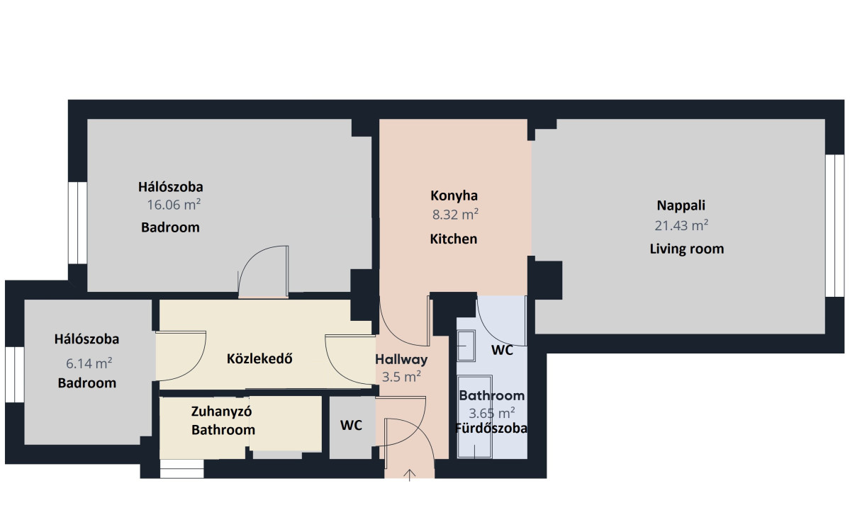- Két lakássá alakítható, így kiváló befektetés rövid és hosszú távú kiadásra