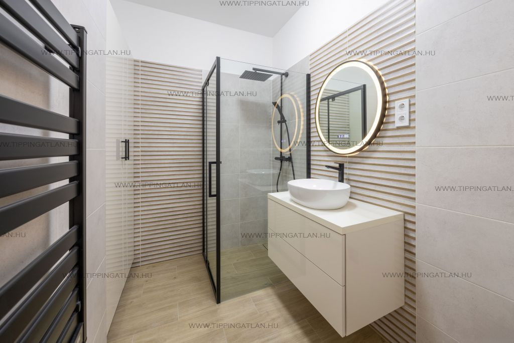 A burkolatok, szaniterek, parketta is prémium minőség.