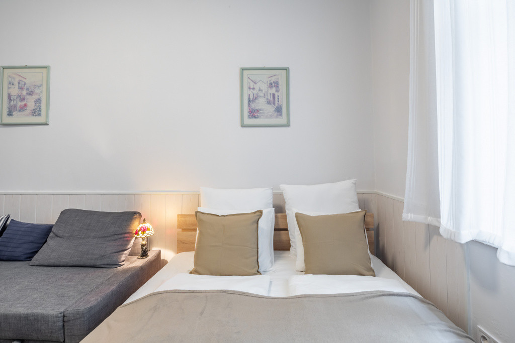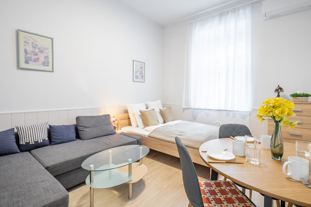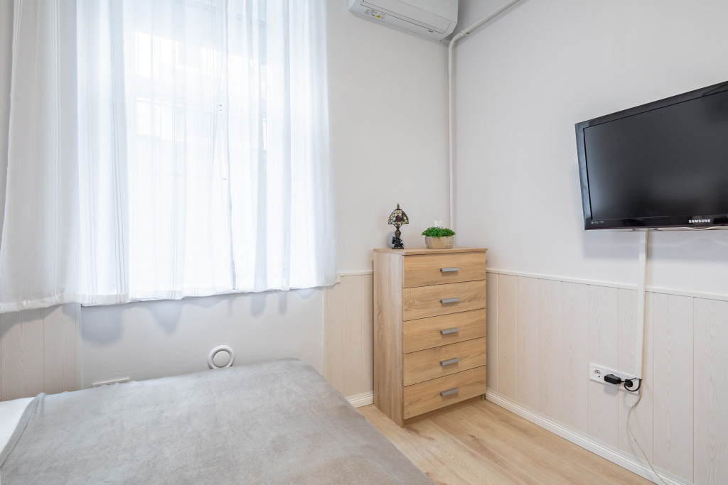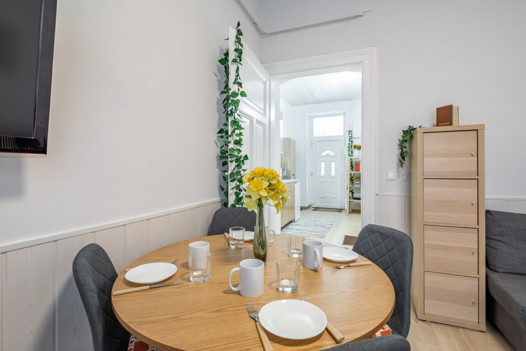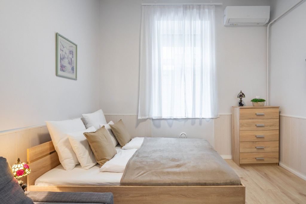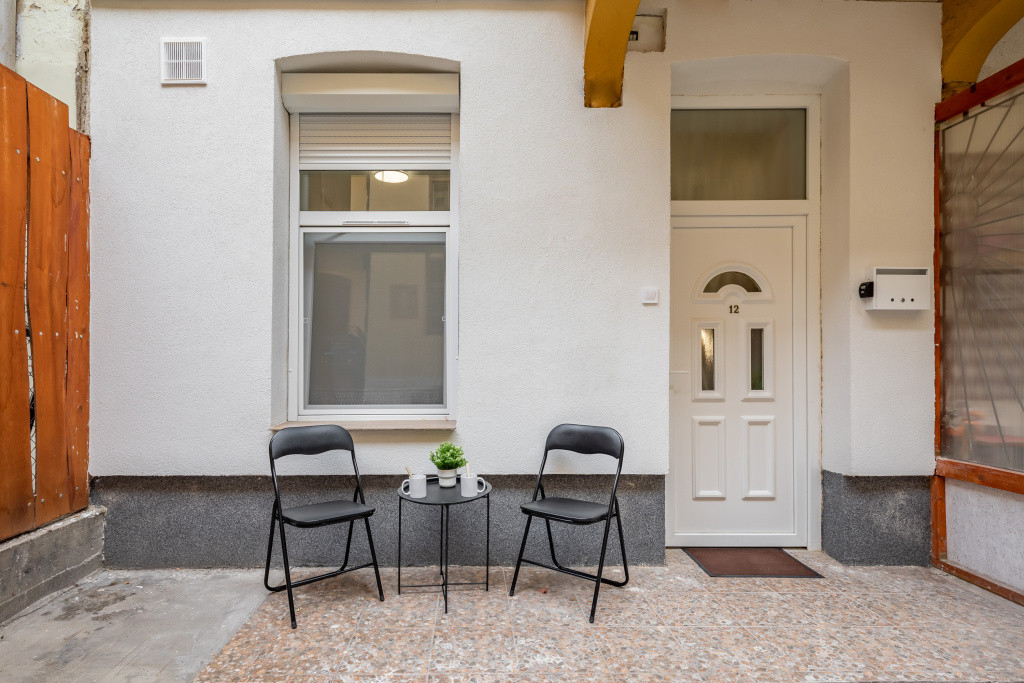 A Dózsa György út - Rottenbiller út - Thököly Út ölelésében található utcában kínálok felújított, berendezett, szép kis földszinti lakást.