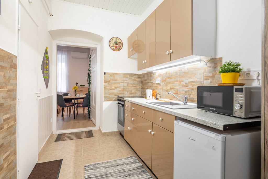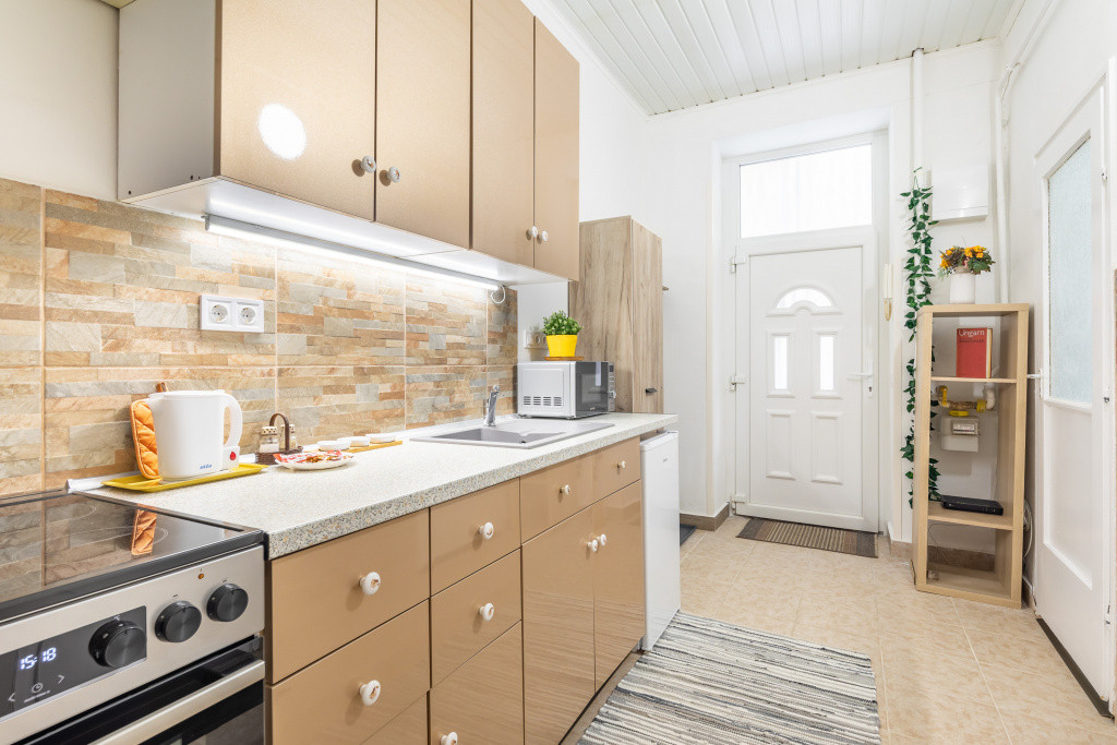 Ízléses színek és berendezés, új villanybojler, új elektromos fűtőtest, műanyag nyílászárók, redőny, berendezett konyha.