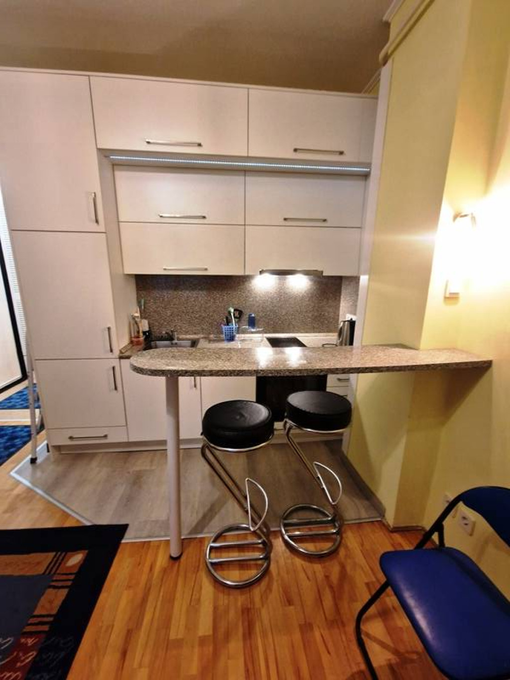 Budapest történelmi VII. kerületének egyik legcsendesebb, legbájosabb utcájában, a Barát utcában kínálunk megvételre egy igényesen kialakított, 28 m²-es, amerikai konyhás otthont.