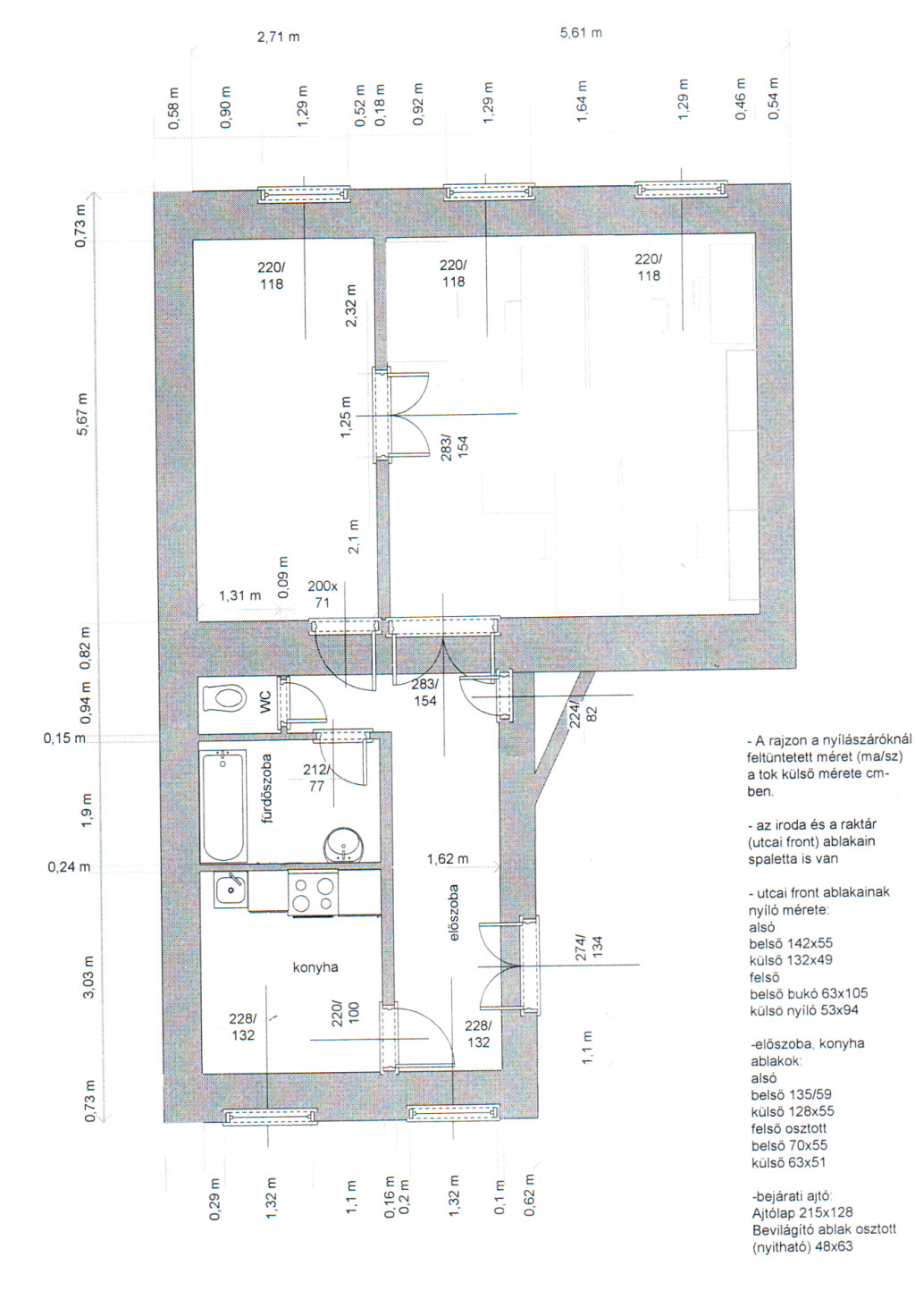 Az udvarra néző, ablakos konyha jól felszerelt, nagyságát tekintve egy kényelmes étkező sarok is kialakítható.