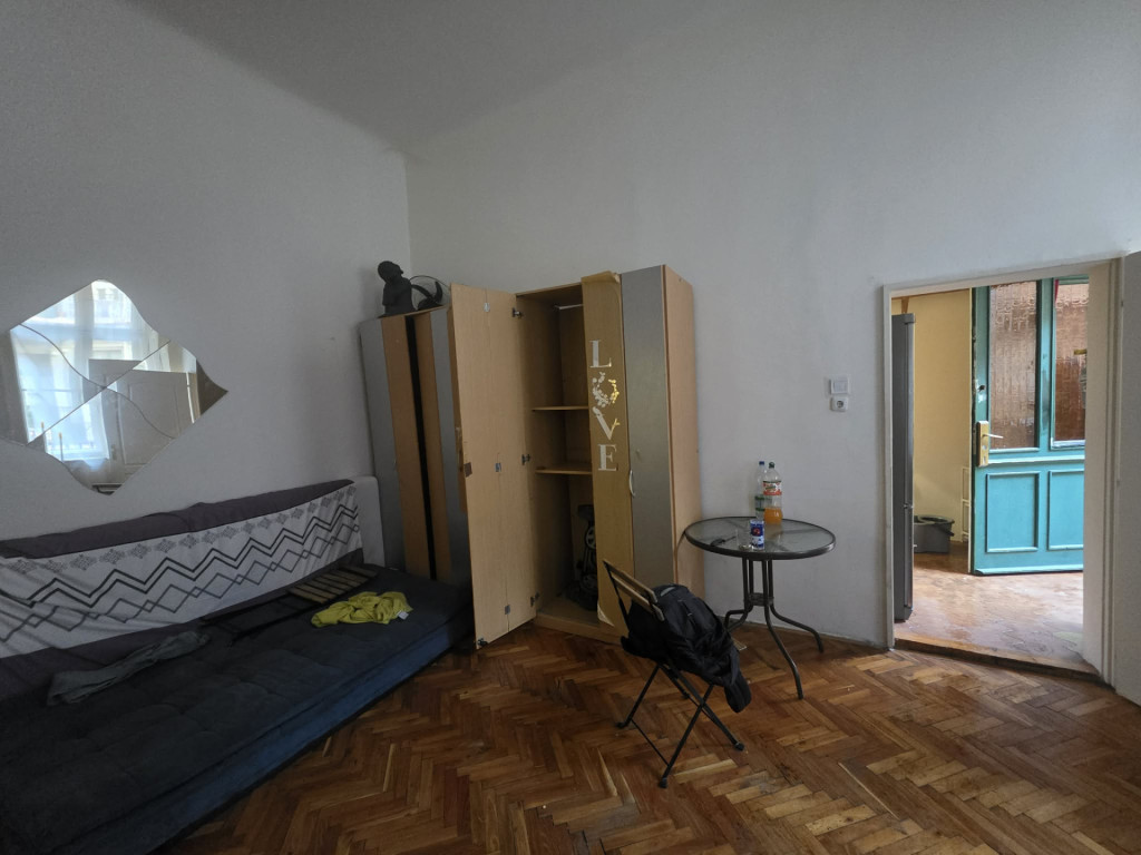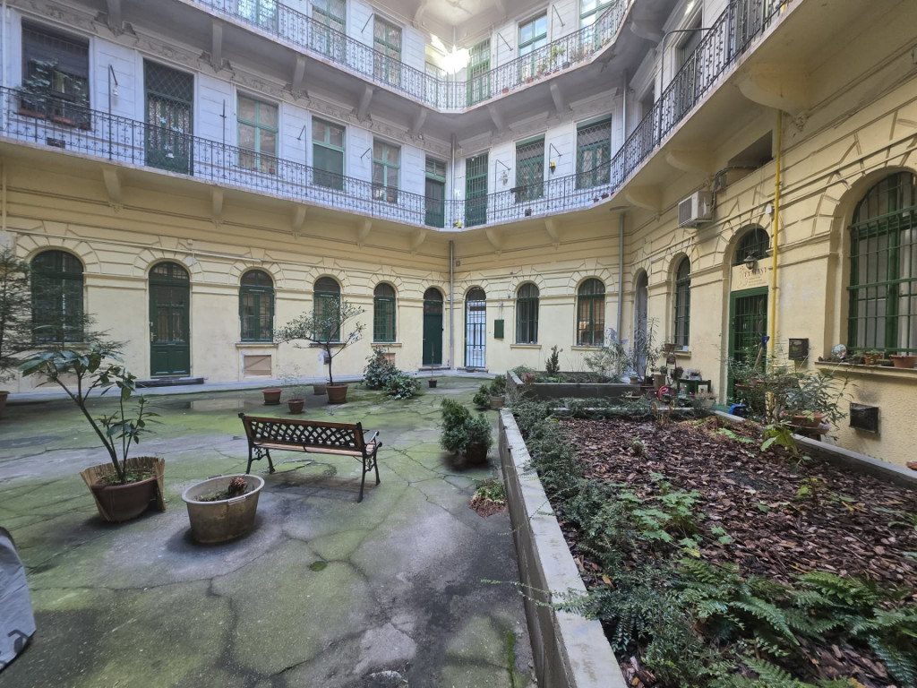 A társasház udvara rendezett, a központi elhelyezkedés ellenére kimondottan csendes, az ingatlan ablakai a belső udvarra néznek. A lakás előszobából, külön konyhából és külön fürdőszobából és egy világos, nagy szobából áll. Fűtése gázkonvektorral történik.