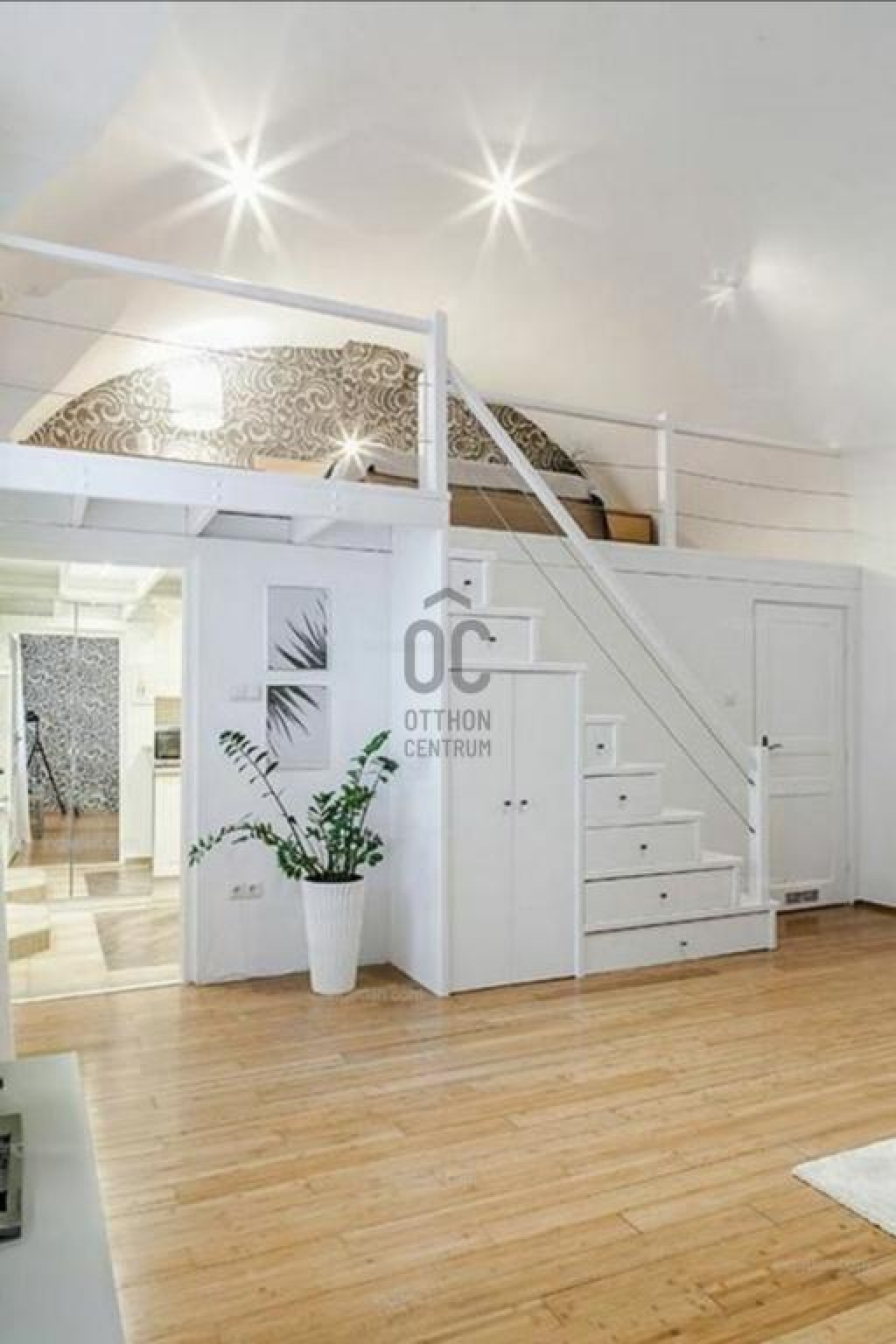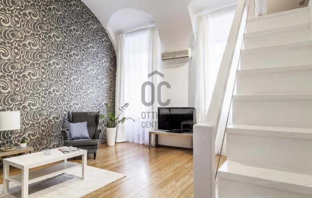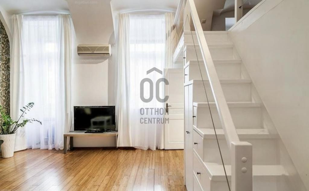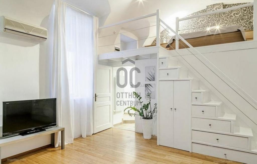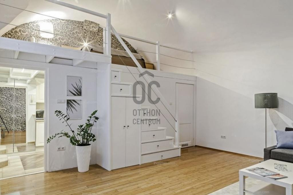 Budapest szívében, a Deák tértől mindössze pár perc sétára eladó ez a 45 m²-es (38 + 15 galériás), különleges hangulatú, magas belmagasságú lakás.
