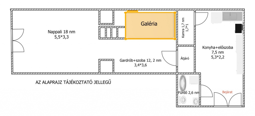 - előszoba+konyha (7,5 nm)