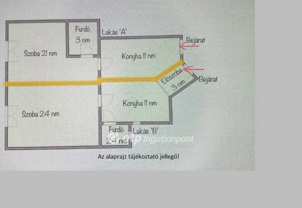 BUDAPEST VII. kerületében, a Városliget közelében eladó egy 74 m2-es, kétszobás lakás, mely jelenleg két önálló lakásra van bontva. Igény esetén csekély költséggel újra egybenyitható.