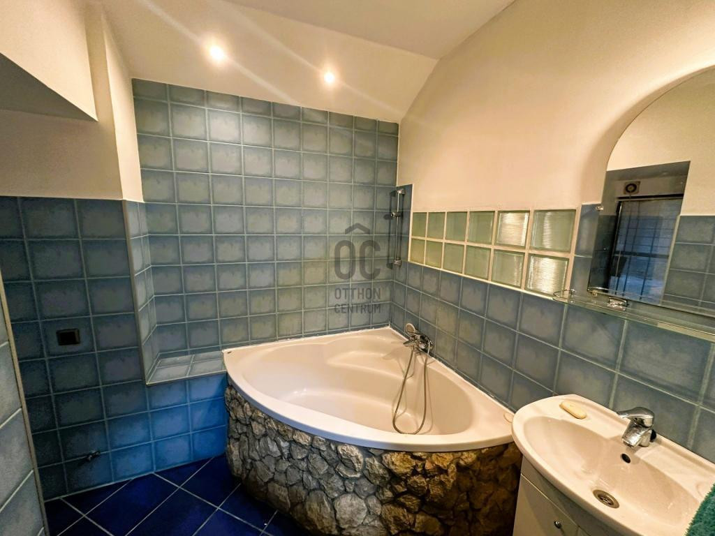 Sarokkádas, ízléses fürdőszoba, külön kézmosós WC