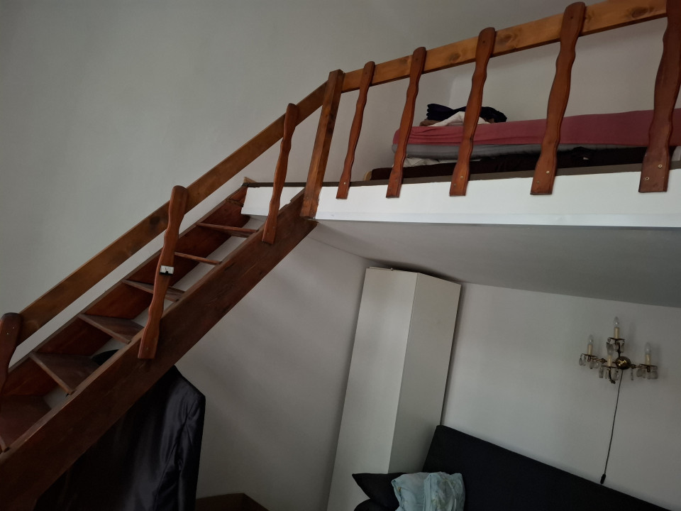 Helyiségek: galériás szoba + konyha + fürdőszoba.