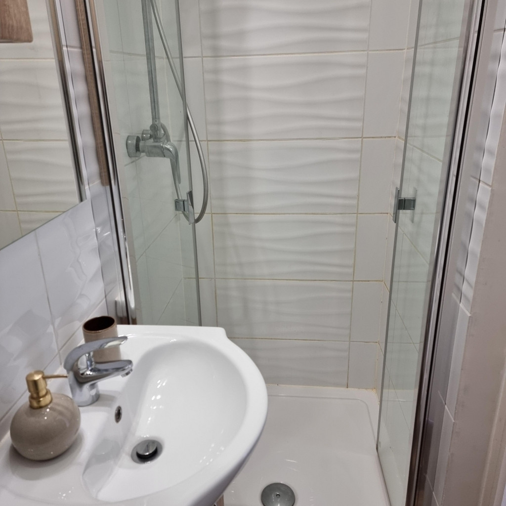 A zuhanyzó és a wc ( egy hete lett cseréve )egy helyiségben van.