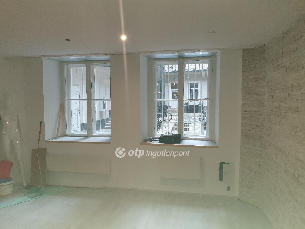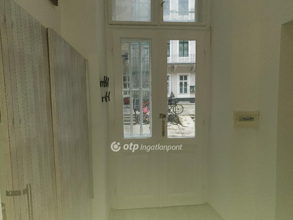 Eladó egy jó állapotú, 73 nm-es lakás a VIII. kerület legkedveltebb részén a Palotanegyedben. A földszinti lakás déli tájolású, ezáltal világos. A nagy belmagasságnak köszönhetően belső kétszintes kialakítást kapott. Az alsó rész 40 nm, ahol az előszobából az amerikai konyhás nappaliba és a fürdőszobába tudunk eljutni, a nappalinak két ablaka nyílik az udvarra. A felső szint 33 nm, itt található egy 12 nm-es szoba és egy 9 nm-es félszoba ezekből szintén kilátás nyílik az udvarra, a két szobát összekötő folyosón van egy beépített gardróbszekrény és a fürdőszoba feletti részen kialakításra került még egy 6 nm-es tárolóhelyiség is. A belmagasság a földszinten 2,75 m, az emeleten 1,9 m.