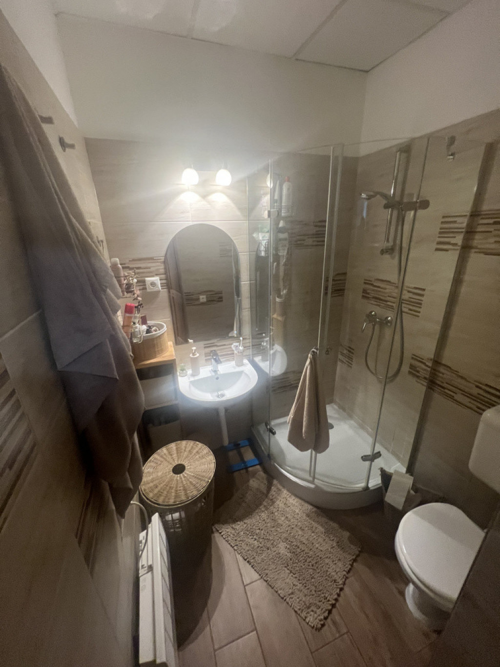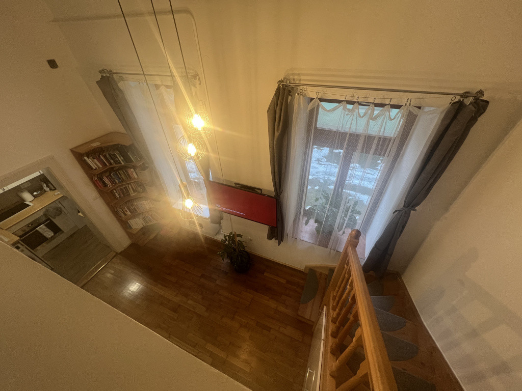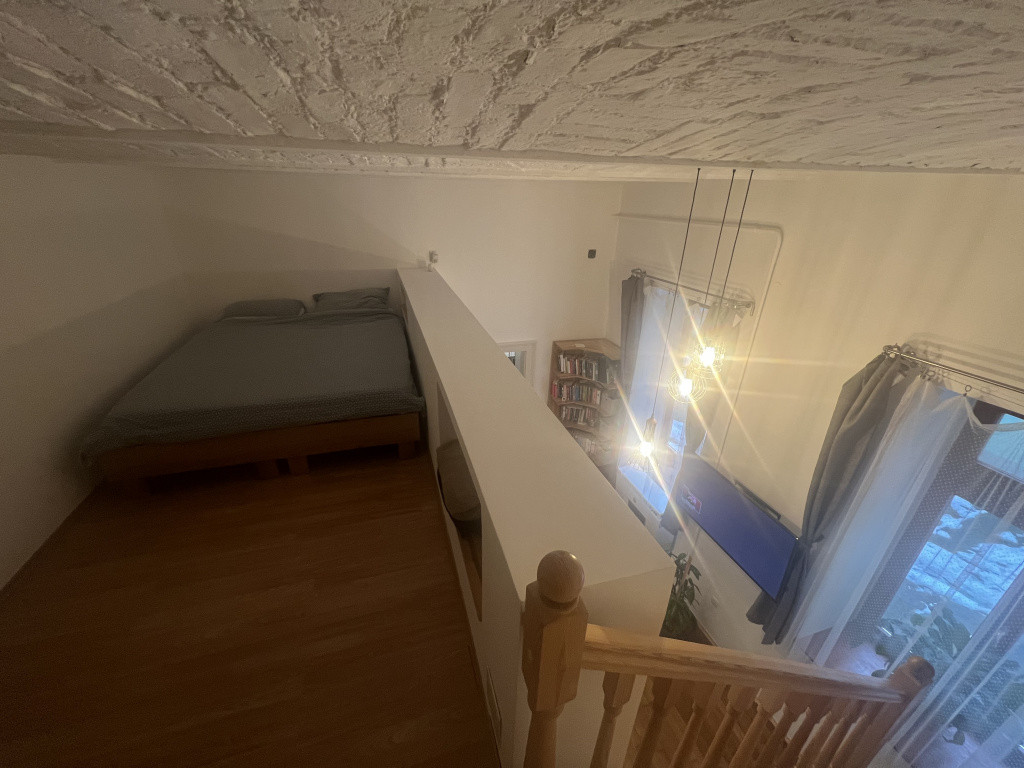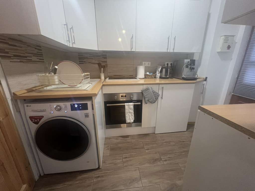 A lakás zuhanyzós fürdőszobával, valamint asztalos által készített konyhával és beépített bútorokkal rendelkezik, így az elrendezés maximálisan kihasznált.