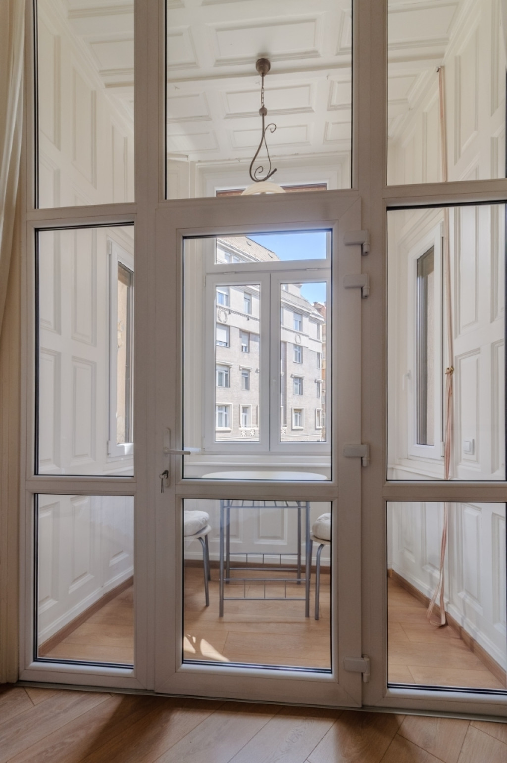 A SZECESSZIÓS ÉPÜLETben lévő 2. emeleti lakáshoz szép lépcsőházon keresztül jutunk fel. (LIFT NINCS)