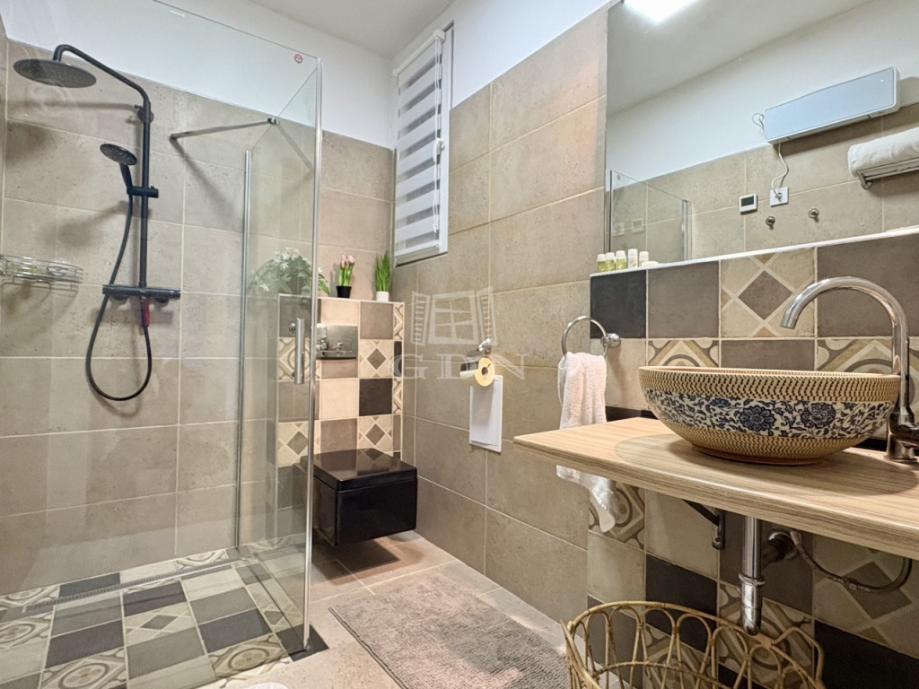 -Zuhanyzós fürdőszoba mosdóval és WC-vel
