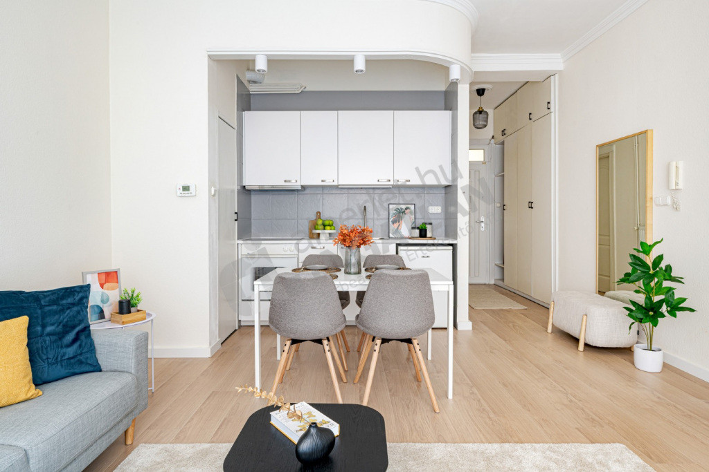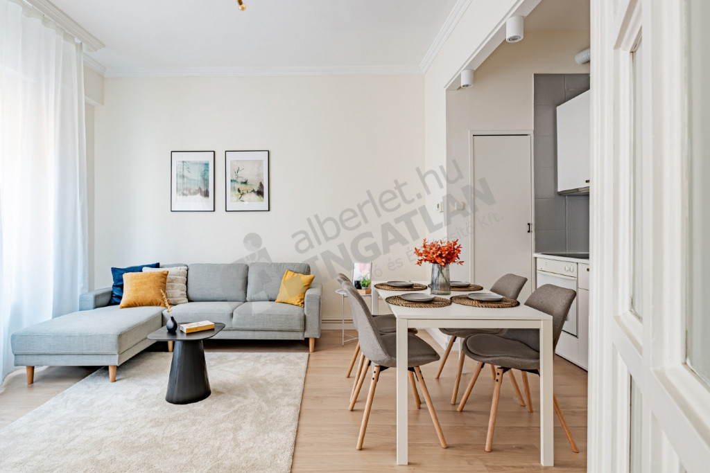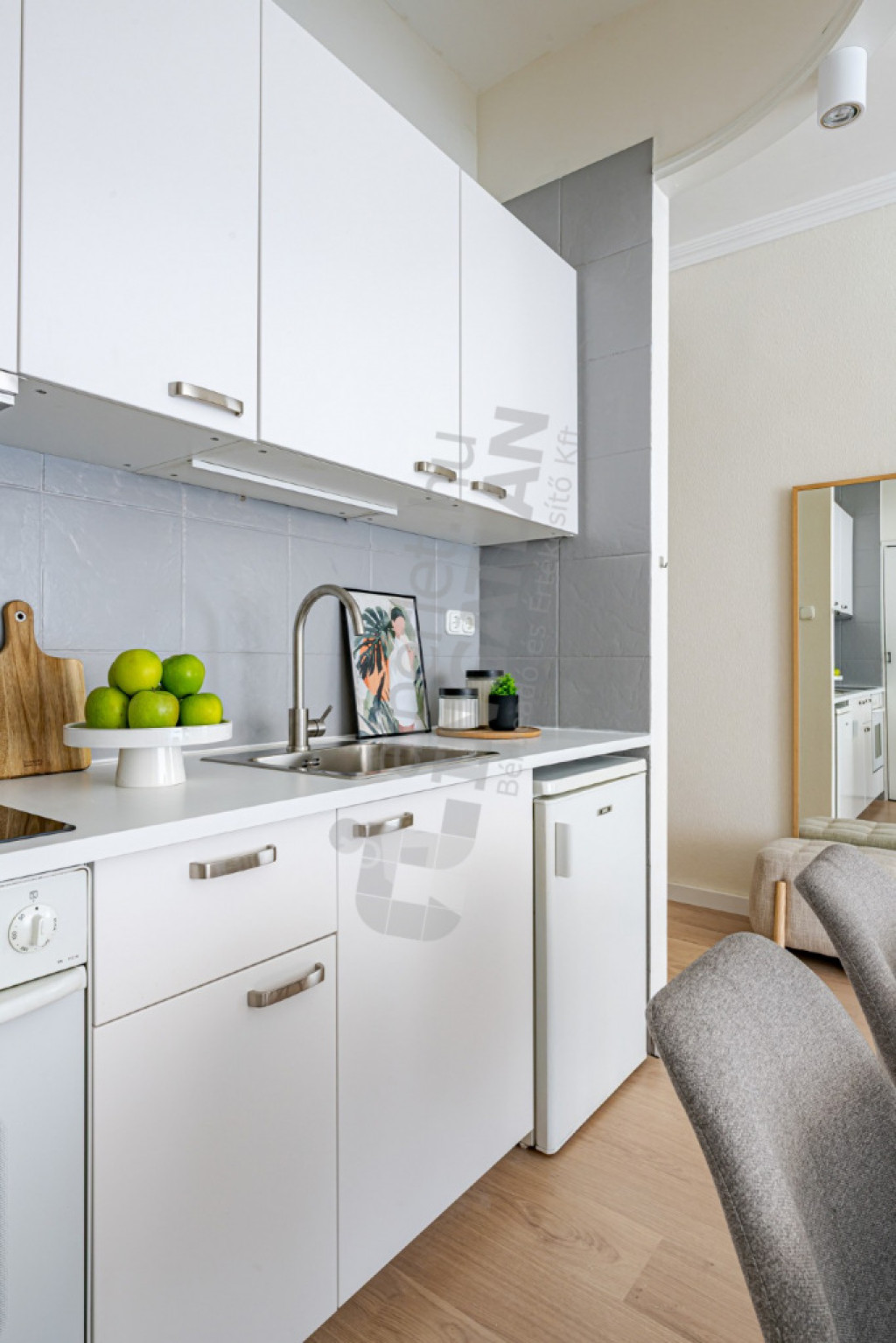 A lakás teljeskörű felújításon esett át – modern burkolatok, stílusos konyha és fürdő, új vagy felújított nyílászárók, minden részletében friss, lendületes hangulatot áraszt. A két szoba ideális elrendezésű: amerikai konyhás nappali és tágas hálószoba biztosítja a kényelmet és a funkcionális elosztást. A lakás azonnal költözhető, TEHERMENTES.