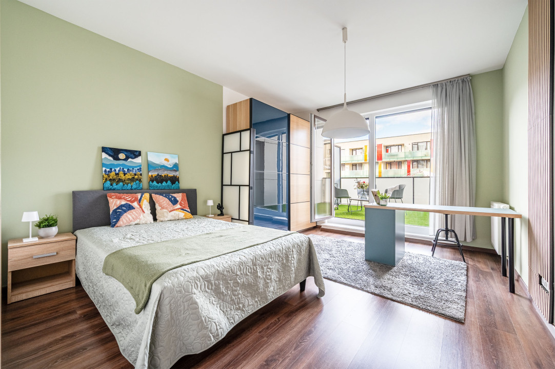 Az ingatlan 2 szobából (1 hálószoba egy nappali), 1WC-ből, fürdőszobából és dupla teraszból áll(43m2). A fürdőszoba épített walk-in zuhannyal felszerelt.