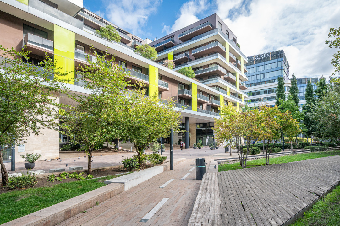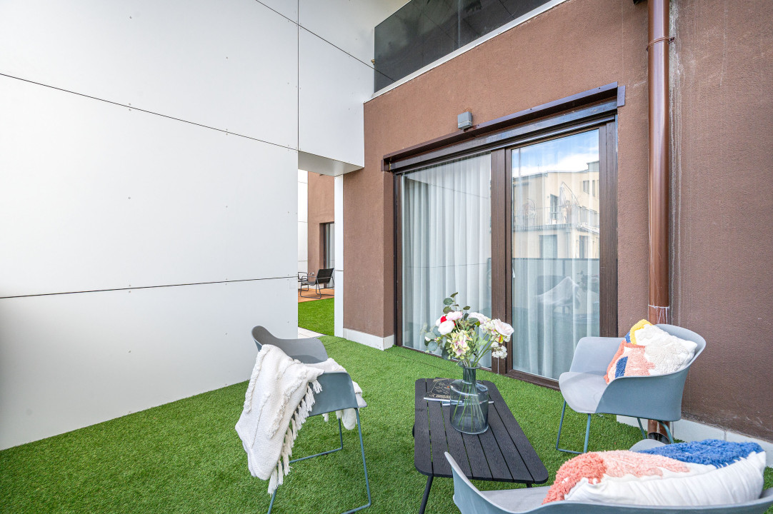A lakás terasza egy csendes utcára néz (Leonardo da Vinci utca)