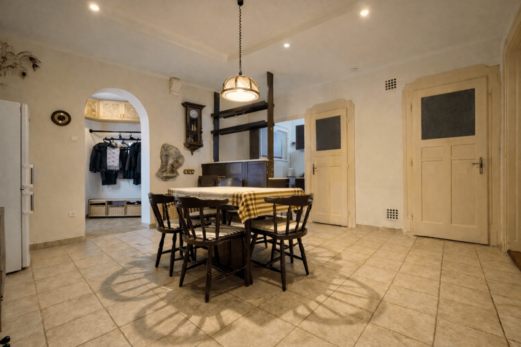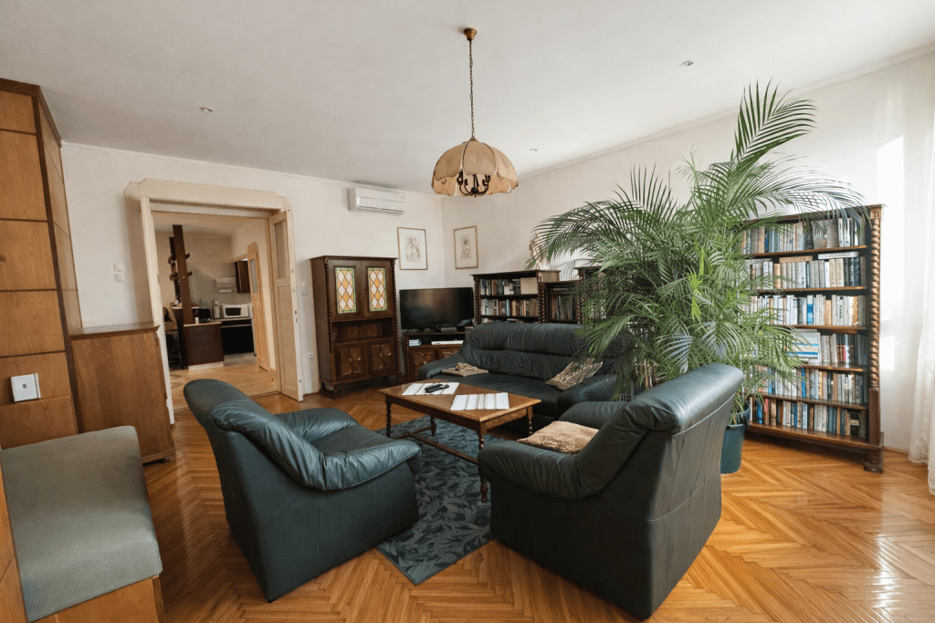 The property is located in Budapest’s 8th district, on Déri Miksa Street, an area that has undergone significant development in recent years. The street was reclassified as a pedestrian zone four years ago, resulting in a calmer, more orderly residential environment while maintaining excellent connectivity to the city. Major public transport routes, including tram and bus lines, are within easy reach, and the city centre can be accessed quickly. The surrounding infrastructure is well established, with shops, services, educational institutions, and healthcare facilities all nearby.