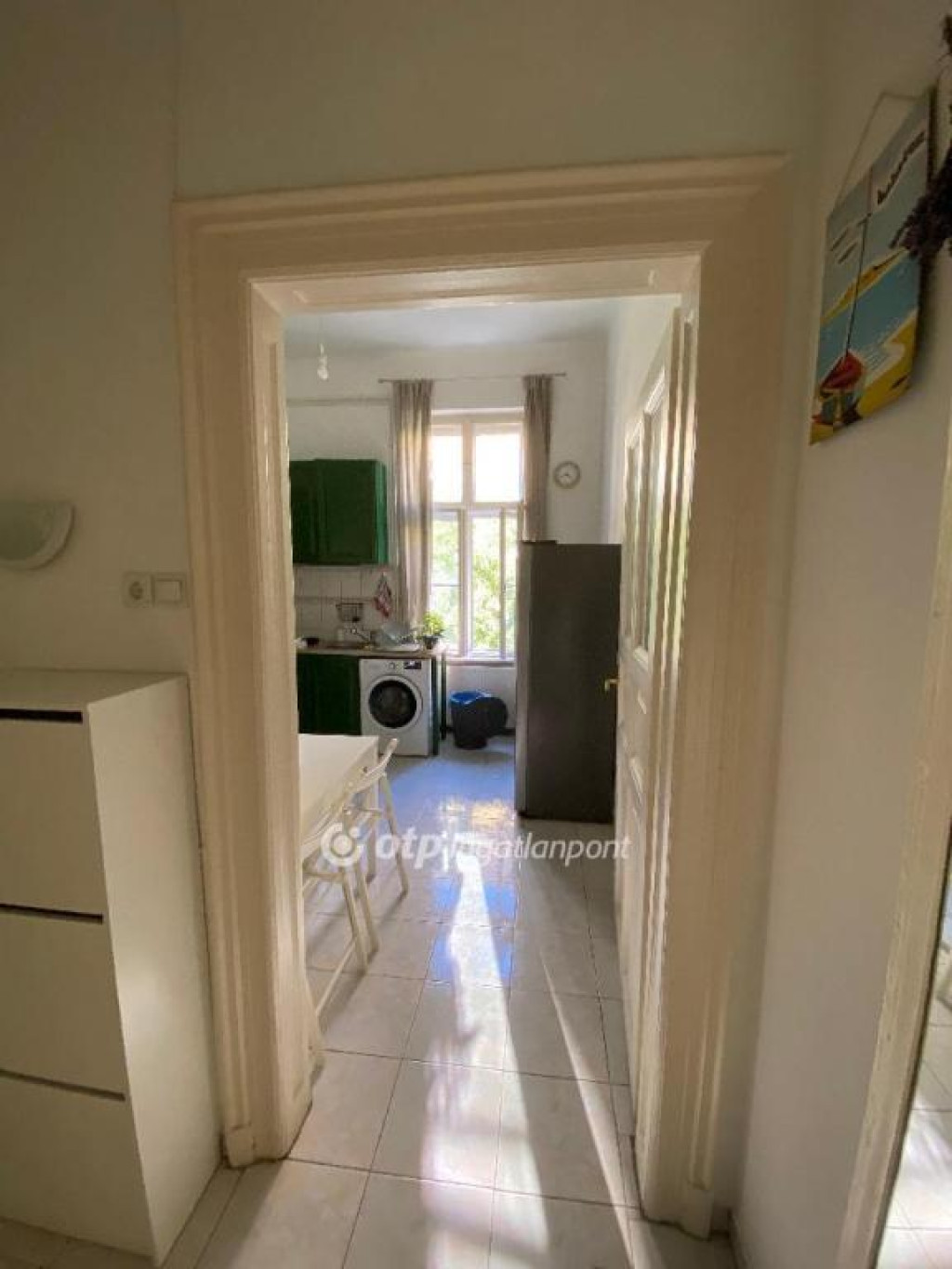 Az előszobából léphetünk be a tágas nappaliba, ahol nagy ablakok biztosítják a sok napfényt. Innen továbblépve jutunk el a teljesen felszerelt fürdőszobába.