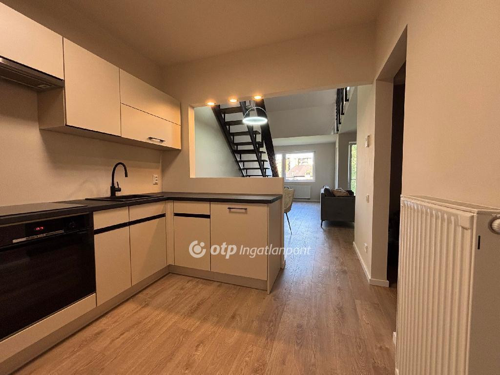 A lakás gyakorlatilag egyben van. Hatalmas belmagasság, hatalmas tér. Terasza és amerikai konyhás nappalijának ablaka az udvari fák koronáira néznek. Nincs szükség függönyökre, nem lehet belátni. Keleti fekvése miatt az egész lakás kora délutánig úszik a napfényben, délután a nyugati oldal ablakai miatt világos. A képek kíválóan visszaadják a lakás fiatalos elosztását. A földszinten amerikai konyhás nappali, gardrób, kádas fürdőszoba WC-vel, 4 négyzetméteres terasz van. Az emeleten hálószoba, tusolós fürdőszoba WC-vel, illetve egy nappalinak avagy hálónak használható tér, egy légtérben a földszinttel. A képeken látható bútorok alku tárgyát képezhetik.