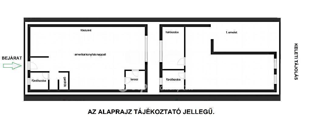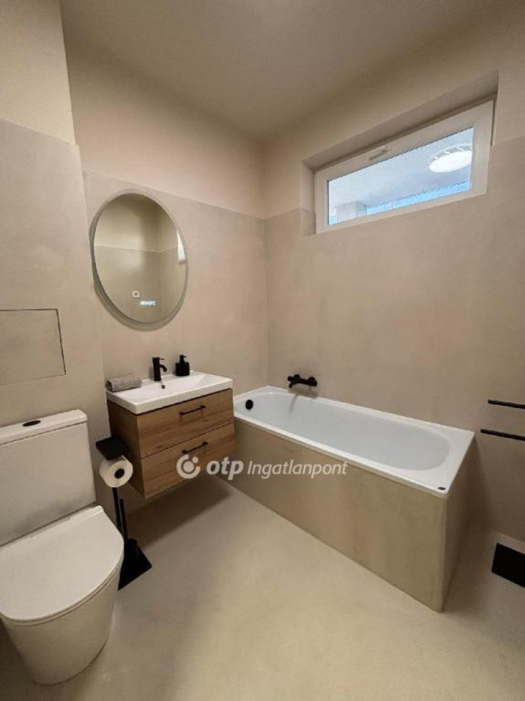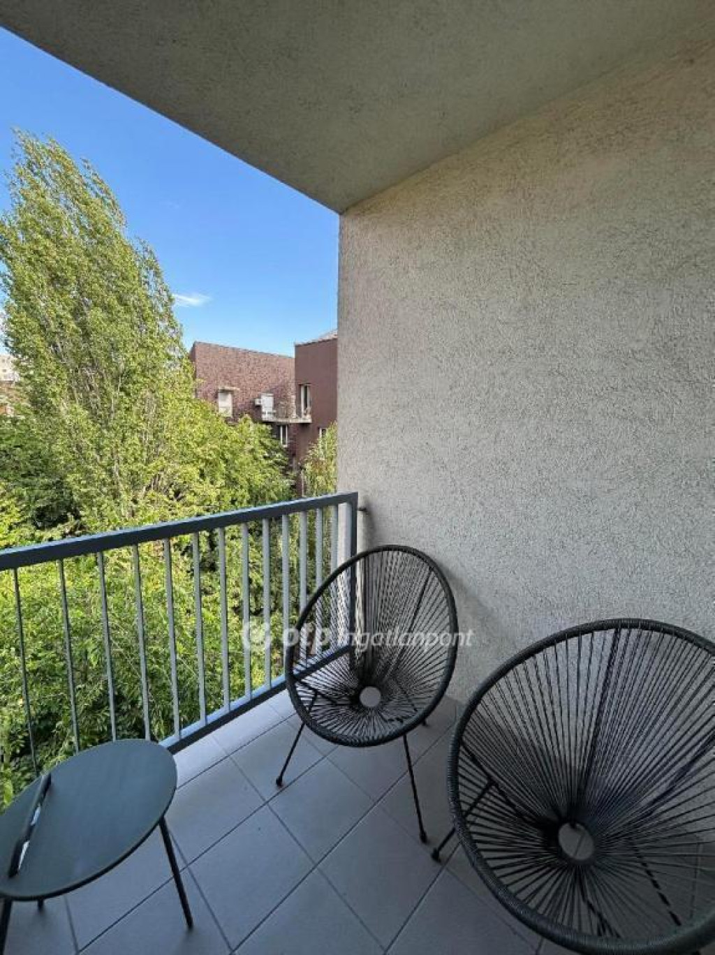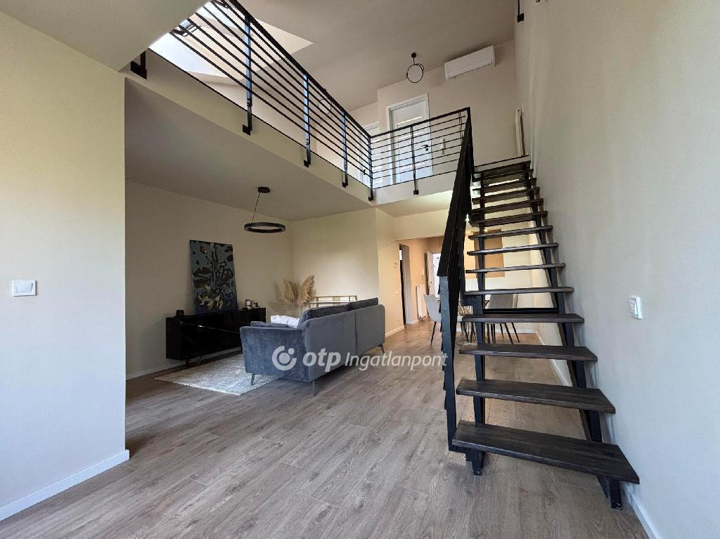 A lakás gyakorlatilag egyben van. Hatalmas belmagasság, hatalmas tér. Terasza és amerikai konyhás nappalijának ablaka az udvari fák koronáira néznek. Nincs szükség függönyökre, nem lehet belátni. Keleti fekvése miatt az egész lakás kora délutánig úszik a napfényben, délután a nyugati oldal ablakai miatt világos. A képek kíválóan visszaadják a lakás fiatalos elosztását. A földszinten amerikai konyhás nappali, gardrób, kádas fürdőszoba WC-vel, 4 négyzetméteres terasz van. Az emeleten hálószoba, tusolós fürdőszoba WC-vel, illetve egy nappalinak avagy hálónak használható tér, egy légtérben a földszinttel. A képeken látható bútorok alku tárgyát képezhetik.