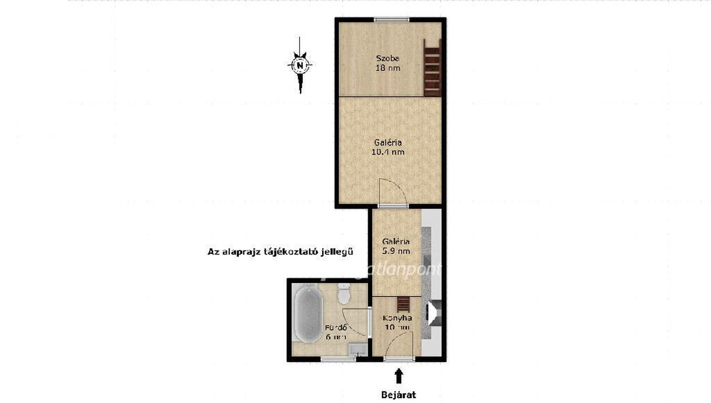 A lakás alapterülete 34 nm (tulajdoni lap szerint 33 nm), amely a 4,1 méteres belmagasságnak köszönhetően galériázva akár 50 nm-re bővíthető praktikusan növelve a kihasználható életteret. A déli tájolás és a nagy belmagasság kellemesen világos, tágas érzetet biztosít. Az ingatlan egy szobás, konvektoros fűtéssel rendelkezik, a 60 cm vastag külső falak pedig hozzájárulnak a kedvező hőérzethez. Klíma felszerelésére van lehetőség.