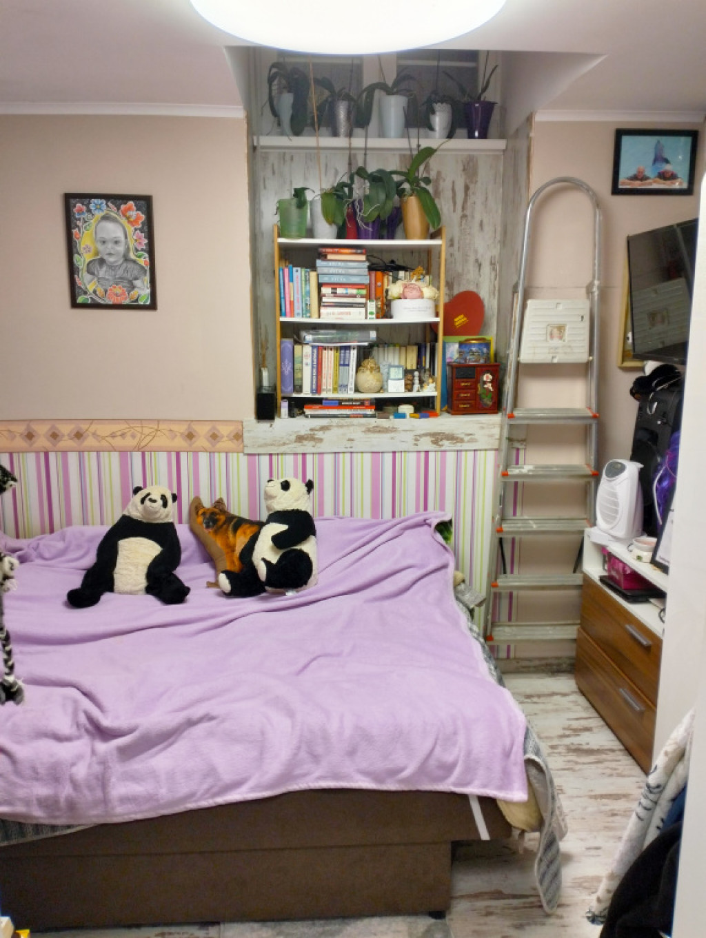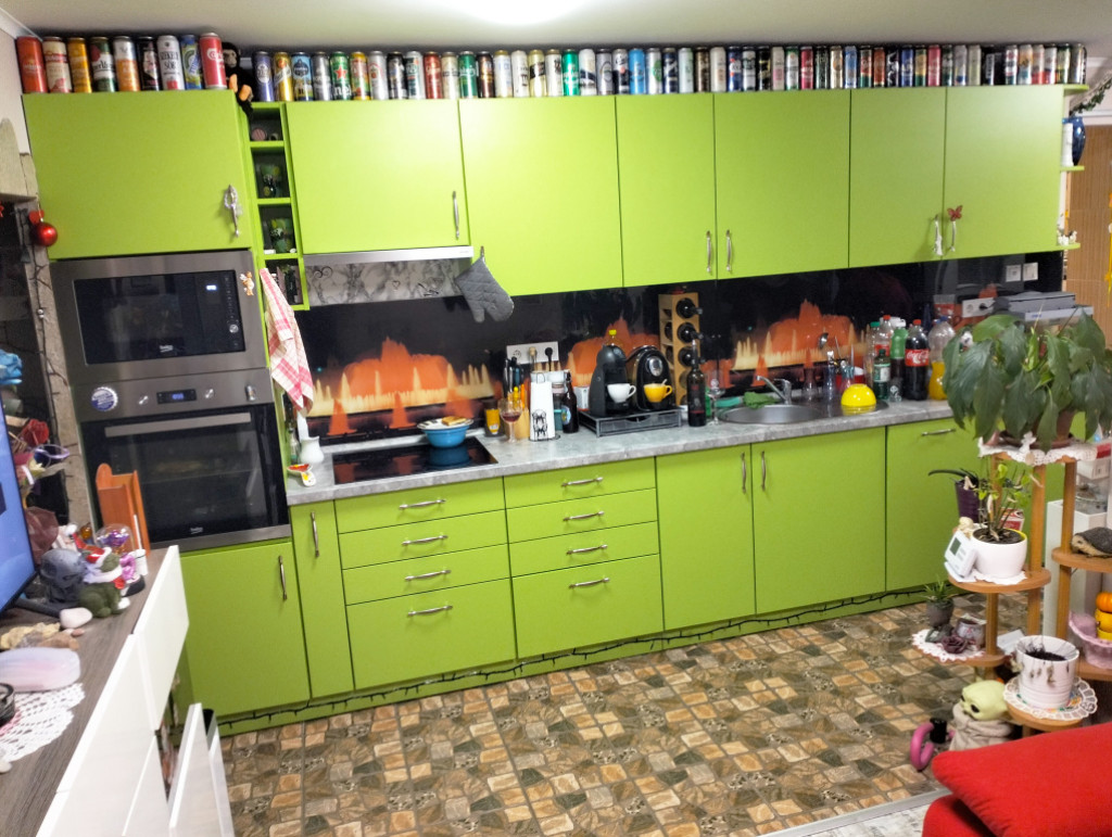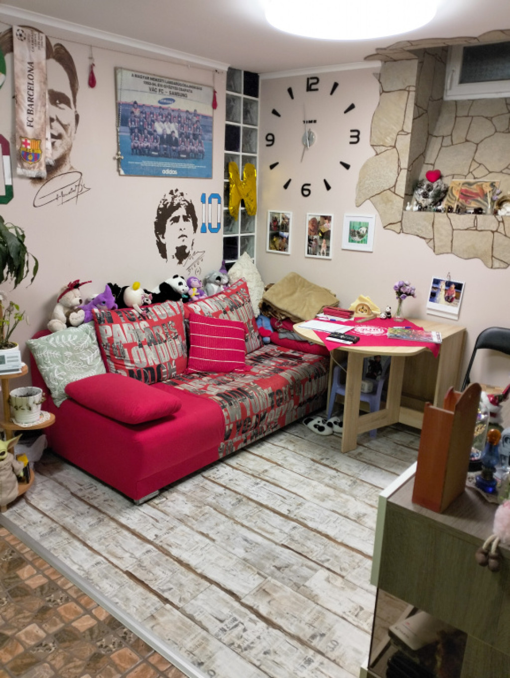 Elosztás: Modern, amerikai konyhás nappali + külön nyíló hálószoba.