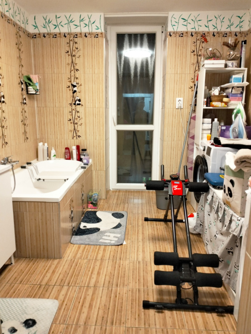 Fürdőszoba: Meglepően nagy és világos, minőségi burkolatokkal.