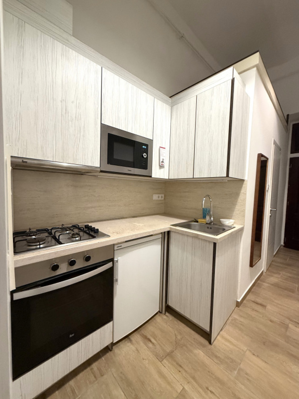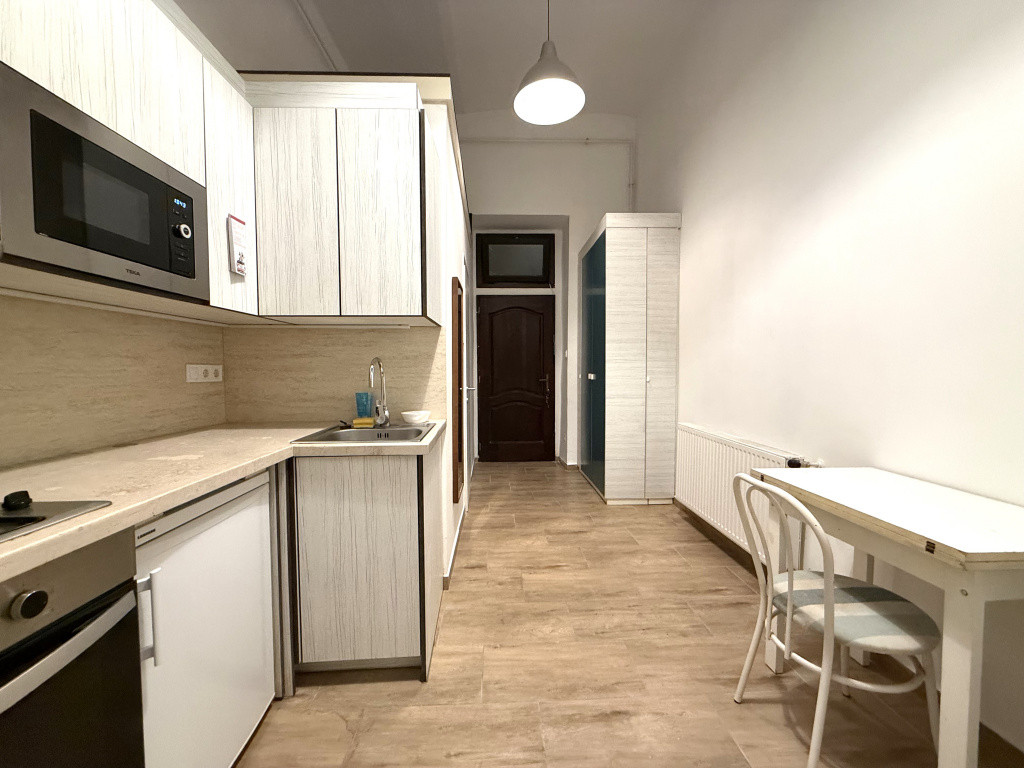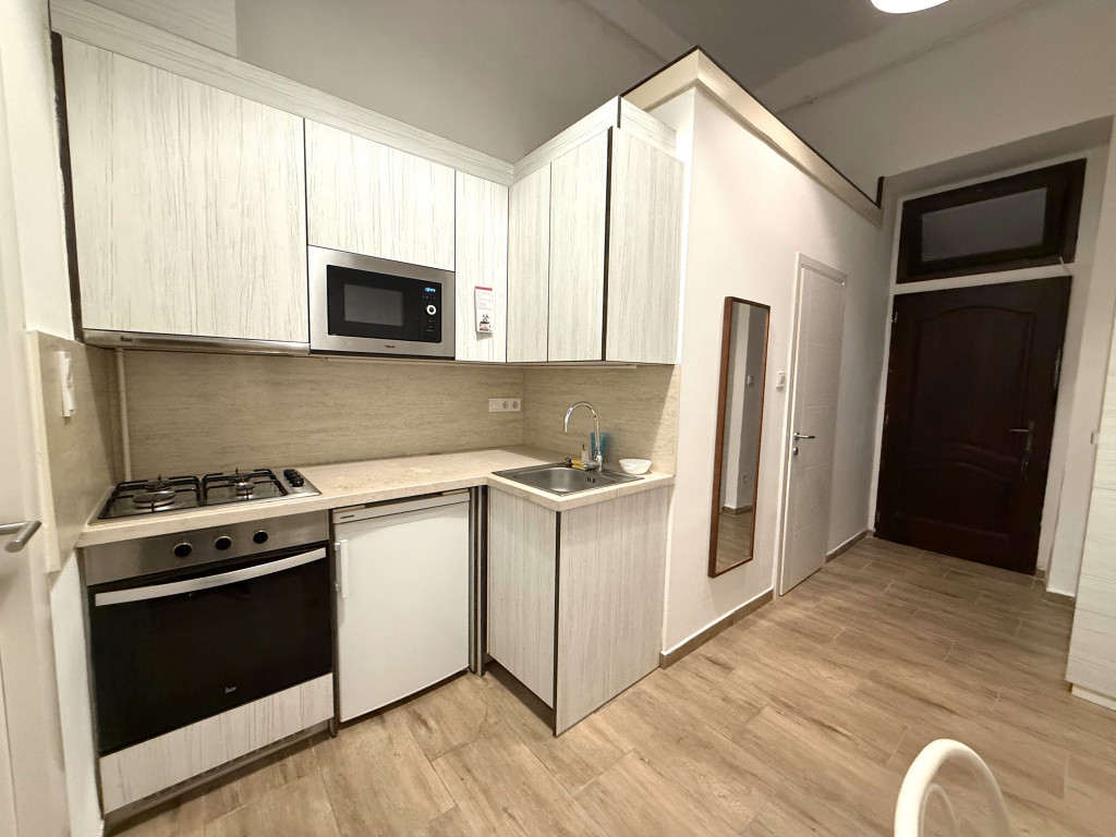 Eladóvá vált egy 27 m2 alapterületű tégla építésű felújított, álló galériás garzon lakás. A lakásba lépve egy előtérbe érkezünk, innen nyílik a mosdóval, zuhannyal felszerelt fürdőszoba, ami a toalettel egy helyégben kapott helyet, a szellőzés elektromos szellőztetővel megoldott. A konyha beépített konyha bútorral, beépített elektromos sütővel, gáz főzőlappal, mikrohullámú sütővel és hűtővel felszerelt. A szoba világos, 14 m2 alapterületű, utcára néző ablakos, 6 m2 álló galériával, egyedi készítésű tároló szekrénnyel. A fűtés gázkonvektorral, a meleg víz villany bojlerrel megoldott, víz órával felszerelt lakás. A lakás teljes körű felújításon esett át, felújításra került az elektromos vezeték, víz-csatorna hálózat, fűtés, új burkolatot, szanitereket, konyha bútort, konyha gépesítést kapott.