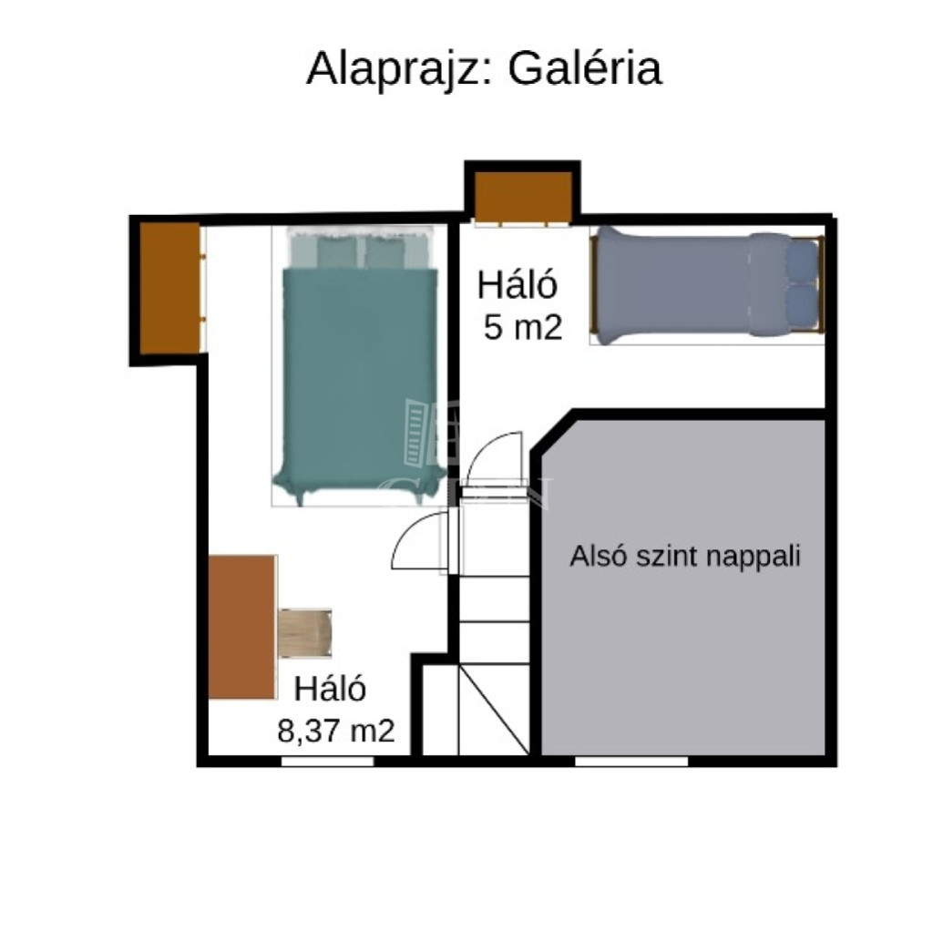 o felső szinten hálórész + külön vendégsarok