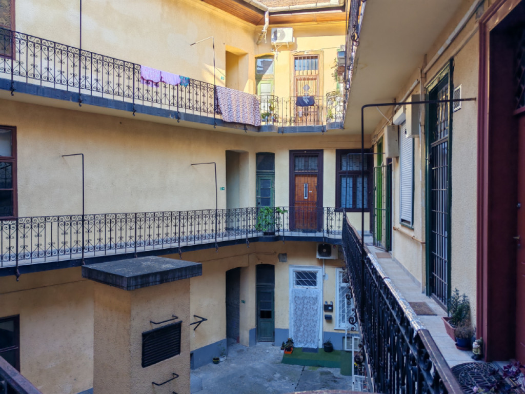 A lakás egy rendezett ház első emeletén található. A ház karbantartott, rendezett, belső terei már felújításra kerültek, a homlokzat még felújításra vár.
