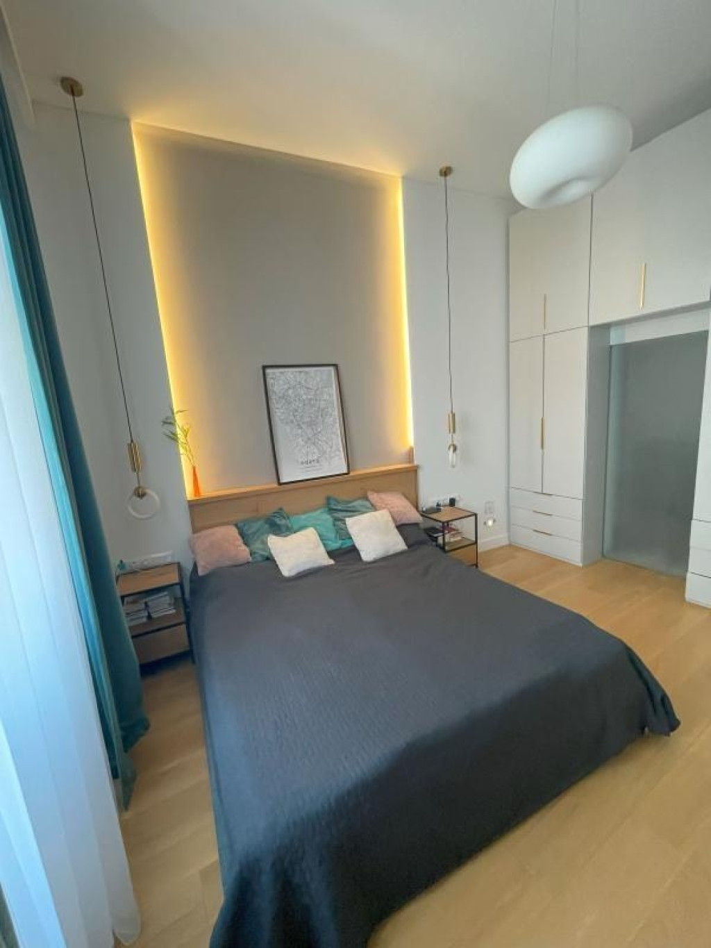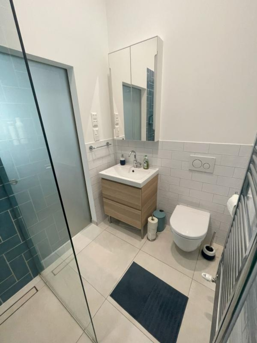 96 m², 2 külön nyíló hálószoba, 2 fürdőszoba, háztartási helyiség.