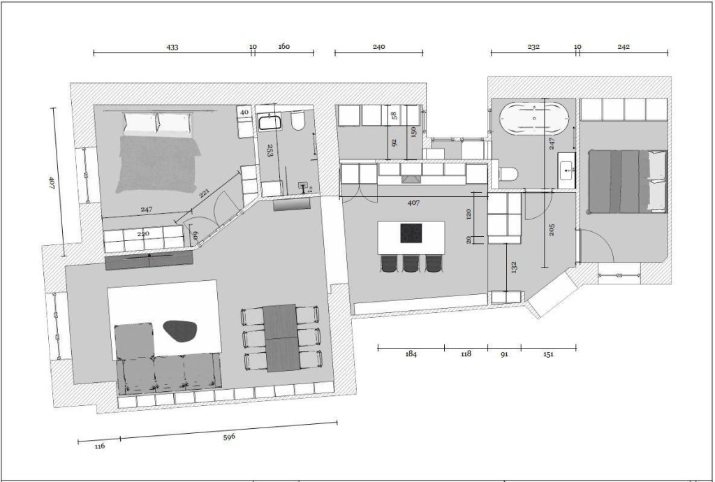 A szakember által tervezett enteriőr miatt a nem beépített bútorok is megegyezés tárgyát képezik.