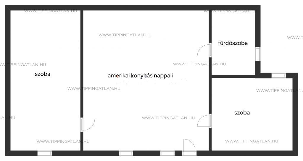 A lakás 55nm-es, praktikus beosztásának köszönhetően megtalálható benne egy amerikai konyhás nappali, 2 külön háló, fürdő, illetve előtér.