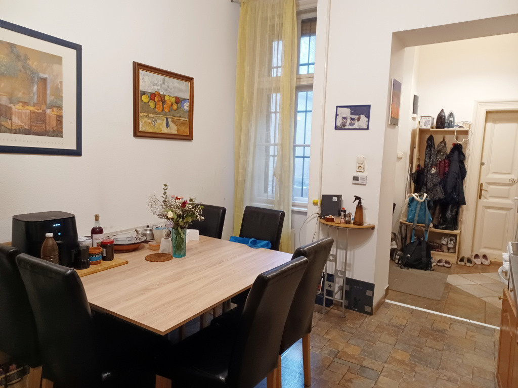 Kiváló közösségi közlekedésnél, 4/6-os villamos 1 perc, M4 metró 5 percere, M2 metró bő 10 perc sétára, 9-es busz 4 perc.