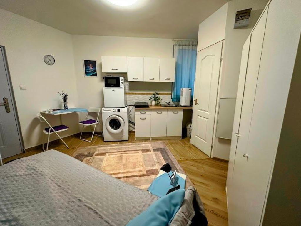 Az ingatlan teljesen felszerelt, így valóban csak költözni kell: modern konyhai gépek, köztük elektromos főzőlap, mikrohullámú sütő és hűtőszekrény, valamint mosógép is rendelkezésre áll. A fűtést elektromos panel biztosítja, a melegvízről bojler gondoskodik, a saját mérőóráknak köszönhetően pedig pontosan követhető a fogyasztás.