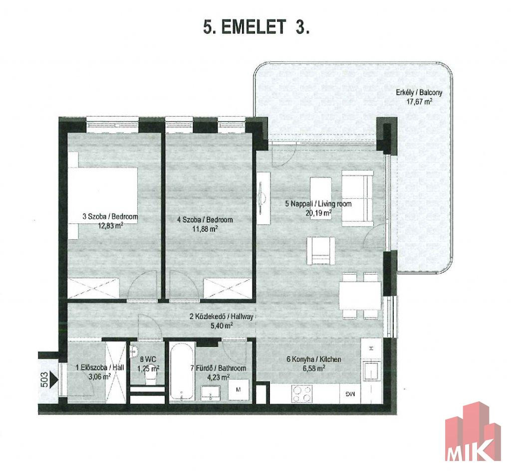 5. emelet 3 szobás 67,13 m2 + terasz 17,67 m2 - 150.000.000.-Ft (503-as)