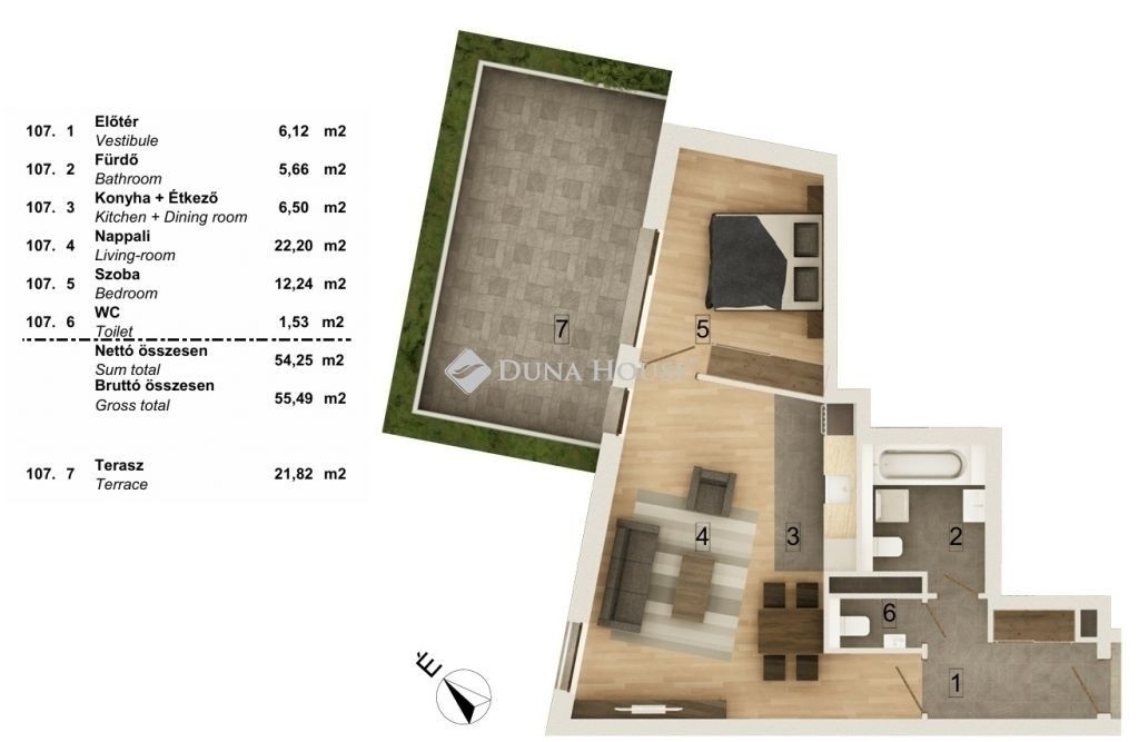 54,25 m²-es modern lakás, + 21,82 m²-es hatalmas terasz, Budapest dinamikusan fejlődő, népszerű városrészében
